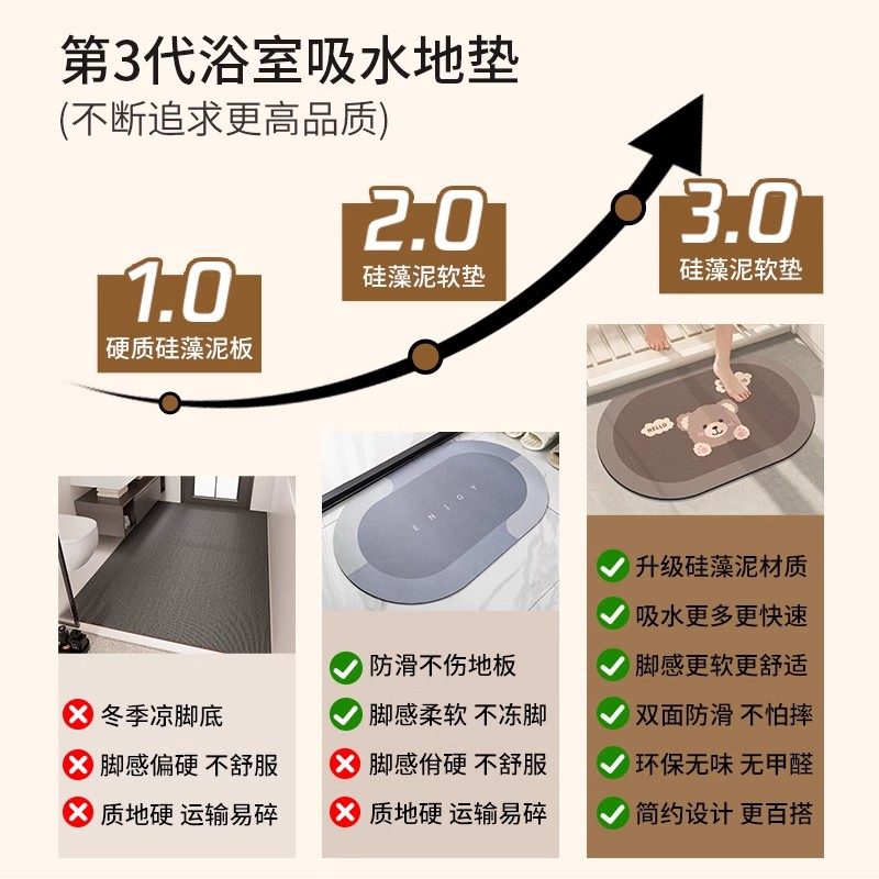 卫生间地垫硅藻泥吸水垫速干浴室洗手间门口防滑脚垫厕所卫浴垫子