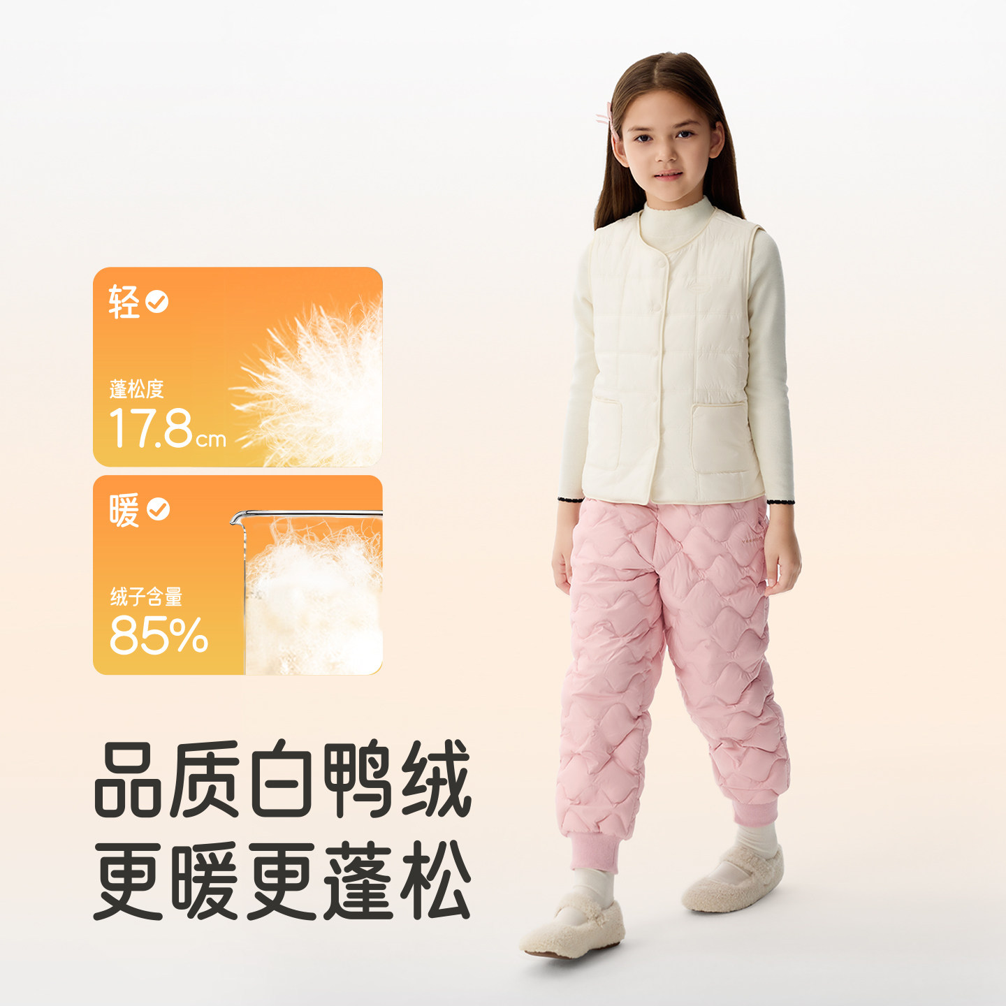 英氏儿童羽绒裤女童女宝加厚冬季保暖御寒防风锁温长裤宝宝户外裤