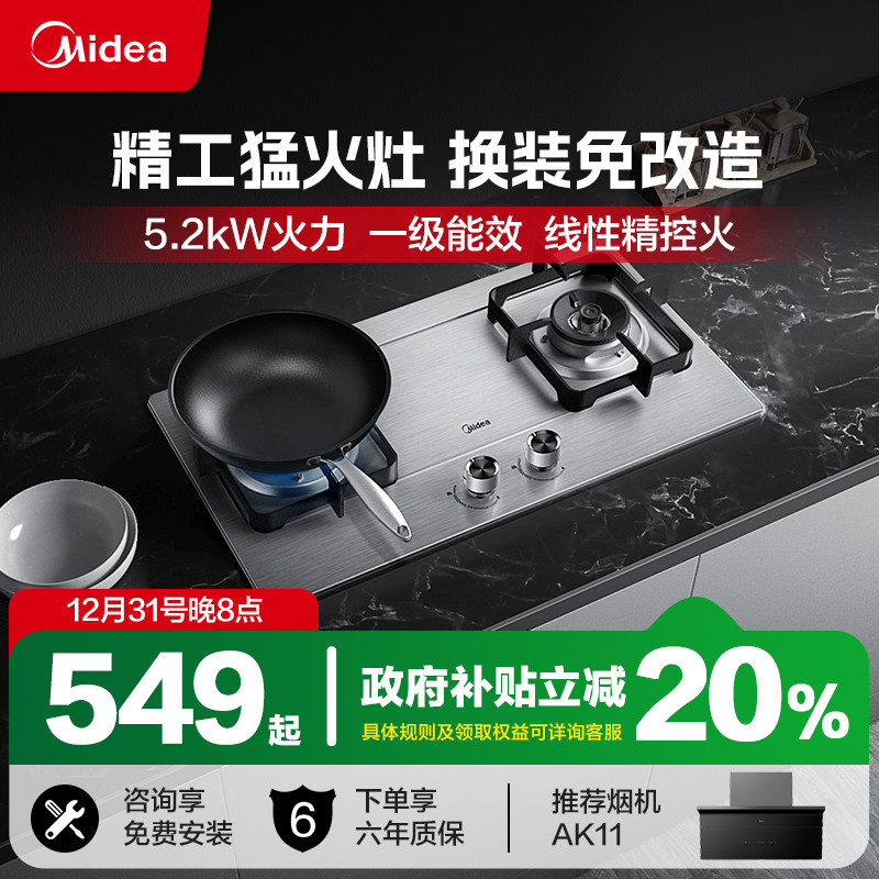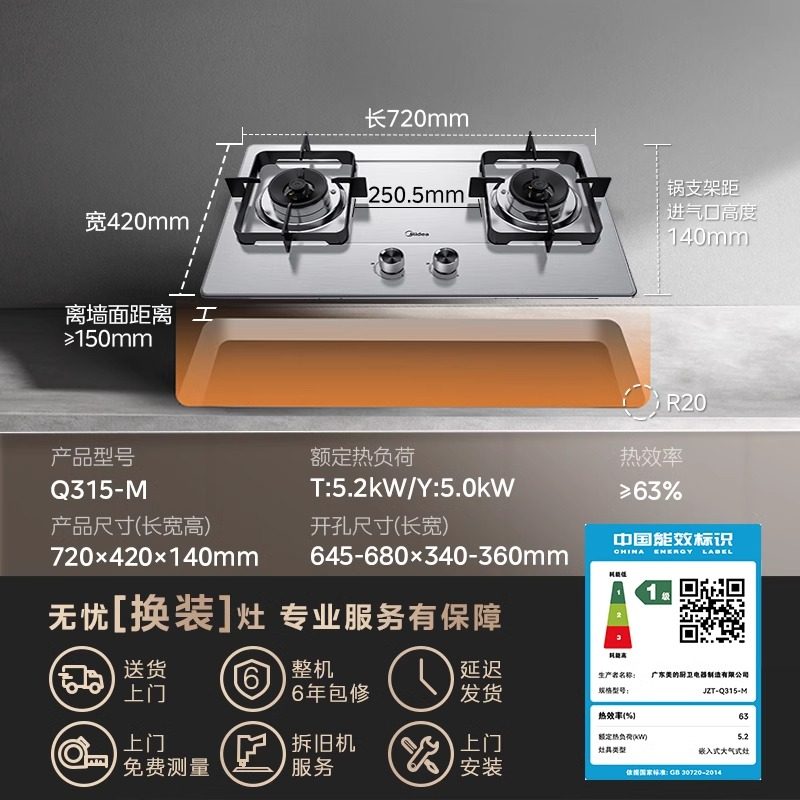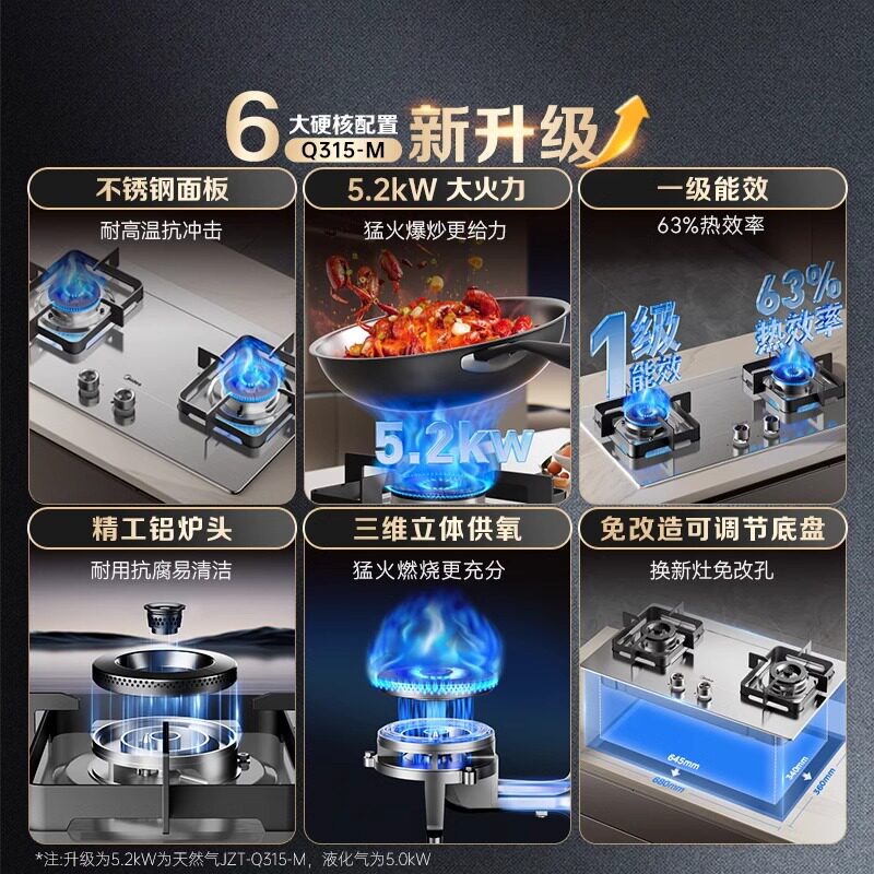 美的家用燃气灶Q315具双灶不锈钢煤气炉天然气液化气煤气官方