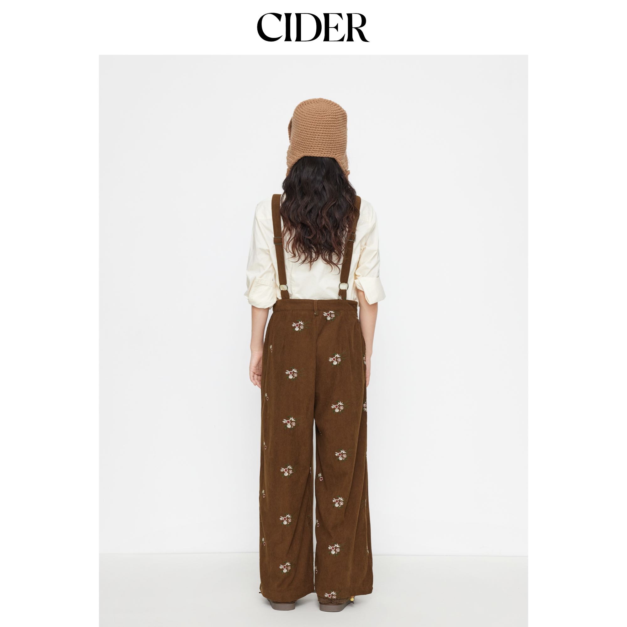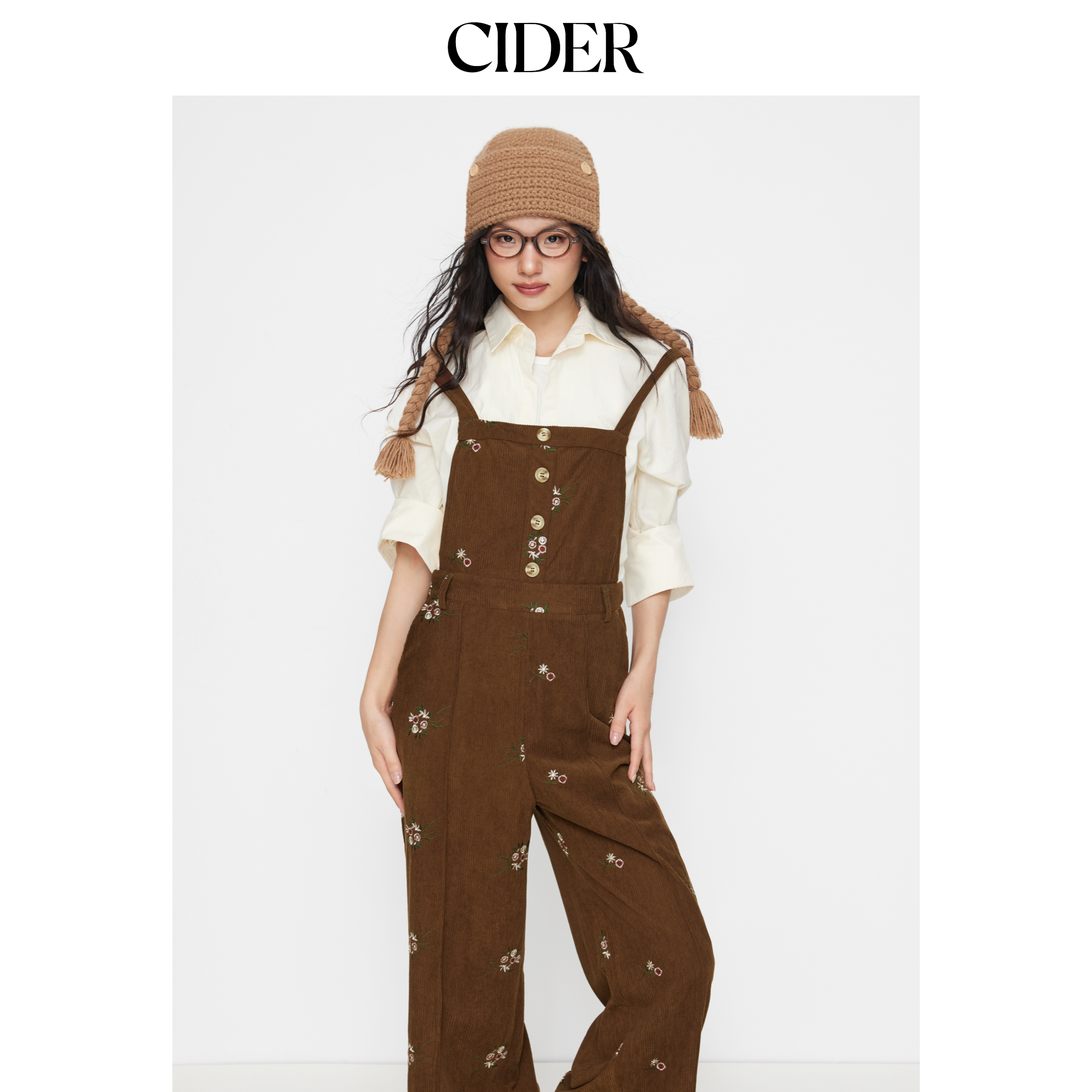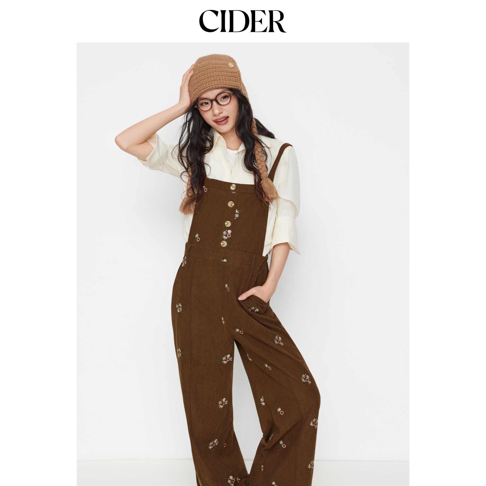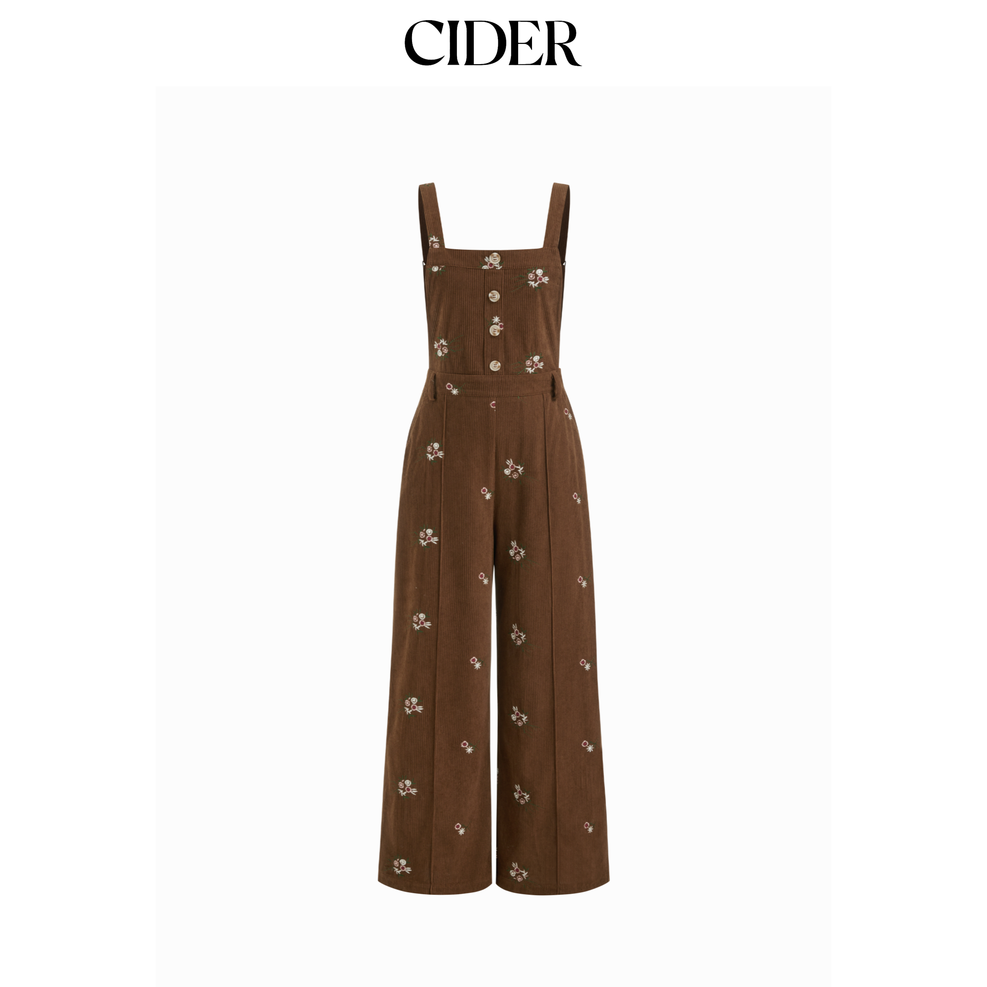 CIDER春秋女装碎花露背口袋阔腿灯芯绒连体裤114915001