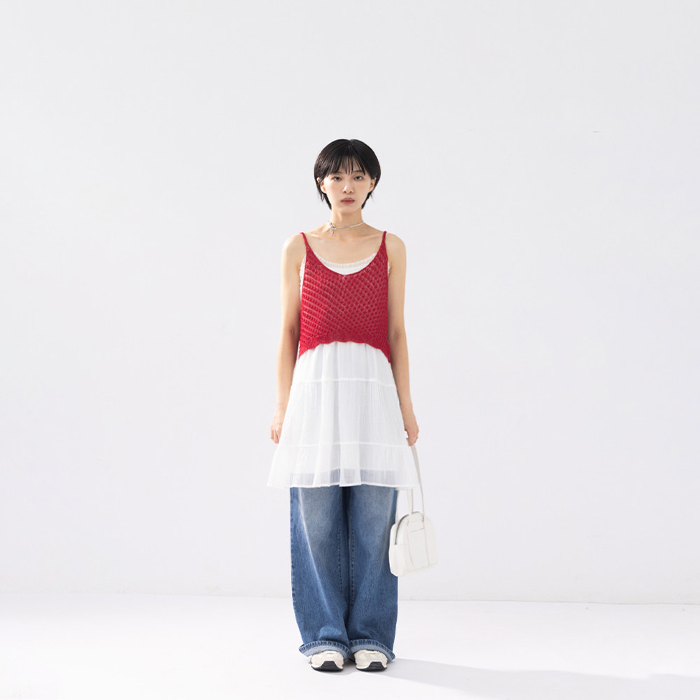 QUEENSHOP 2025秋冬新品女装缇花造型针织细肩罩衫背心01099197
