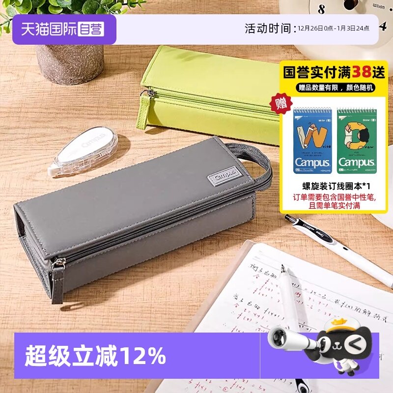 【自营】kokuyo国誉Campus大容量横开笔袋男大容量考研透明日本文具盒考试铅笔学生笔袋初中生笔盒女简约