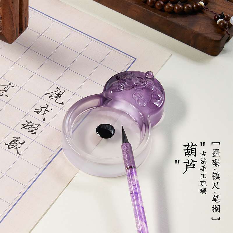 笔墨纸砚写毛笔字墨蝶墨碟墨盒国风送礼雅物墨汁笔舔砚台镇尺琉璃水晶玻璃墨盘笔搁文房四宝笔洗书法用品