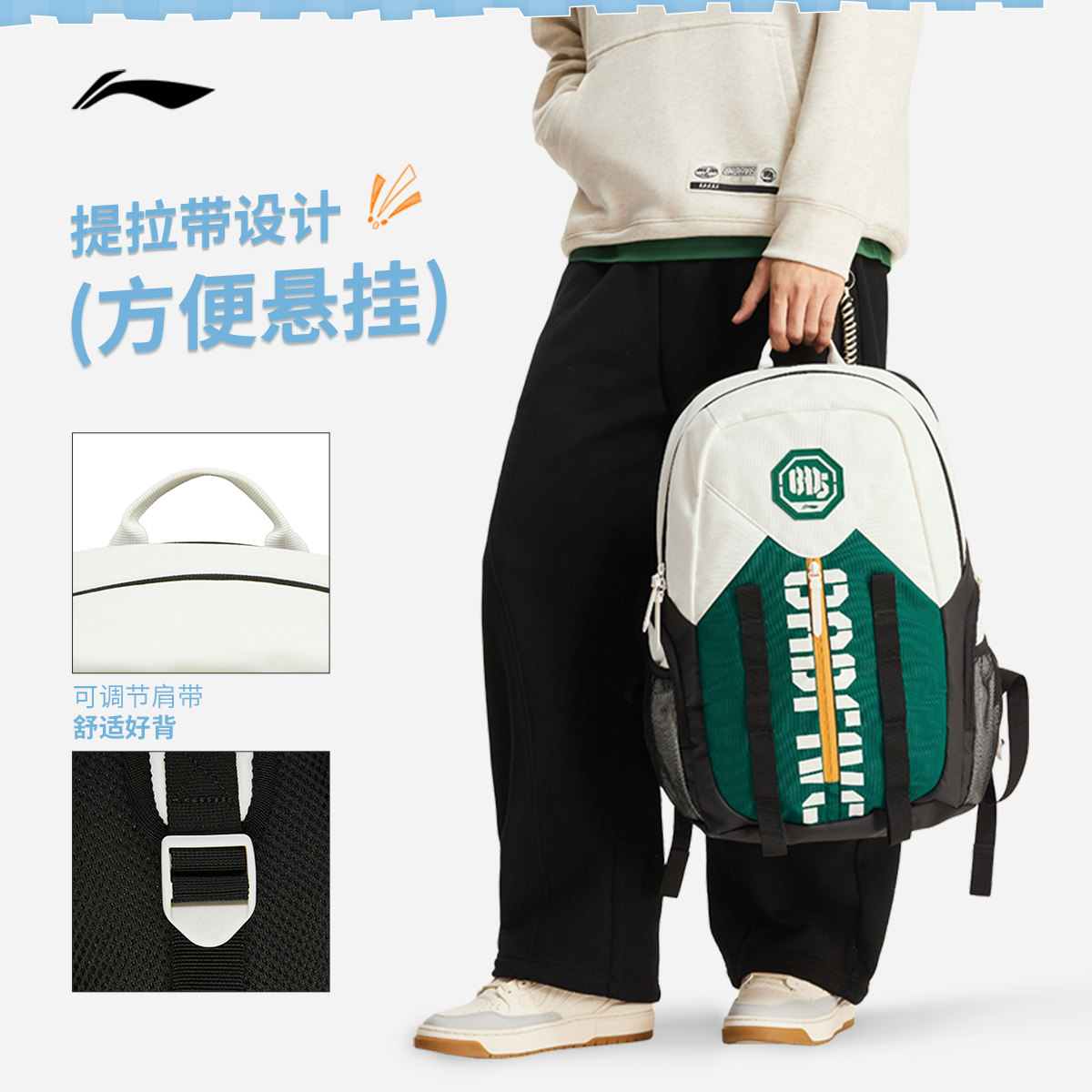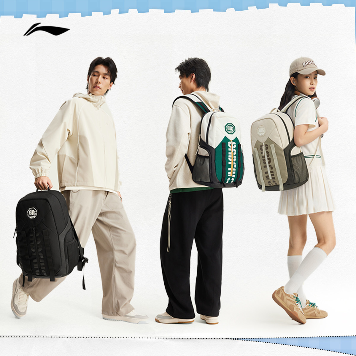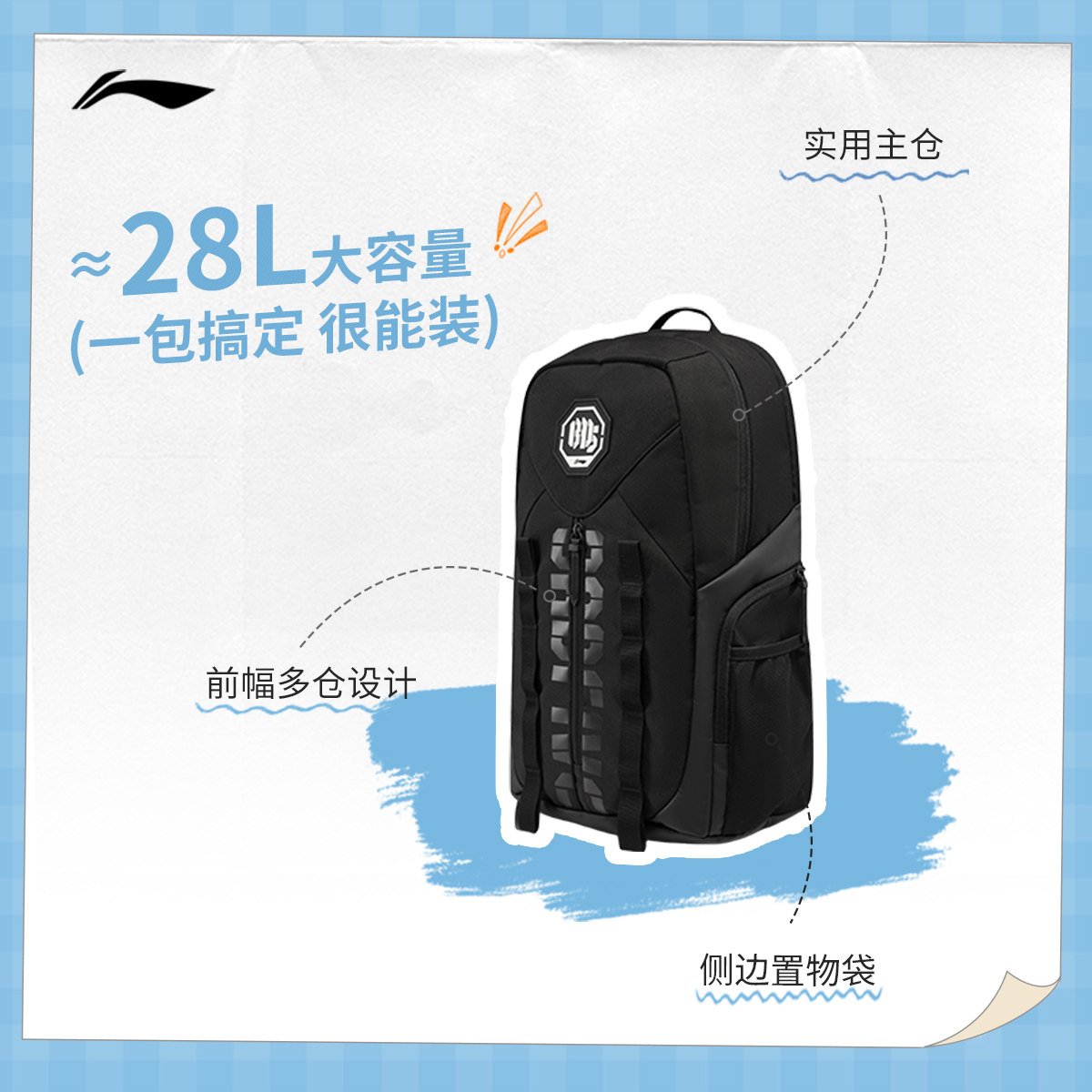 李宁反伍BADFIVE双肩包男包女包背包书包学生运动包