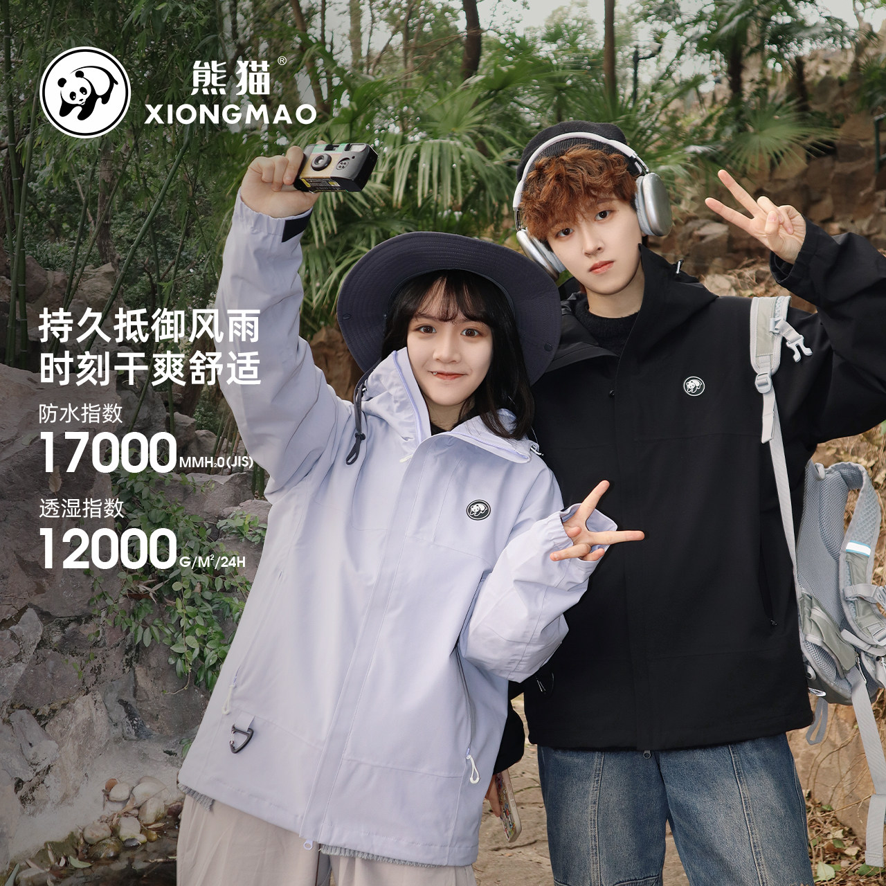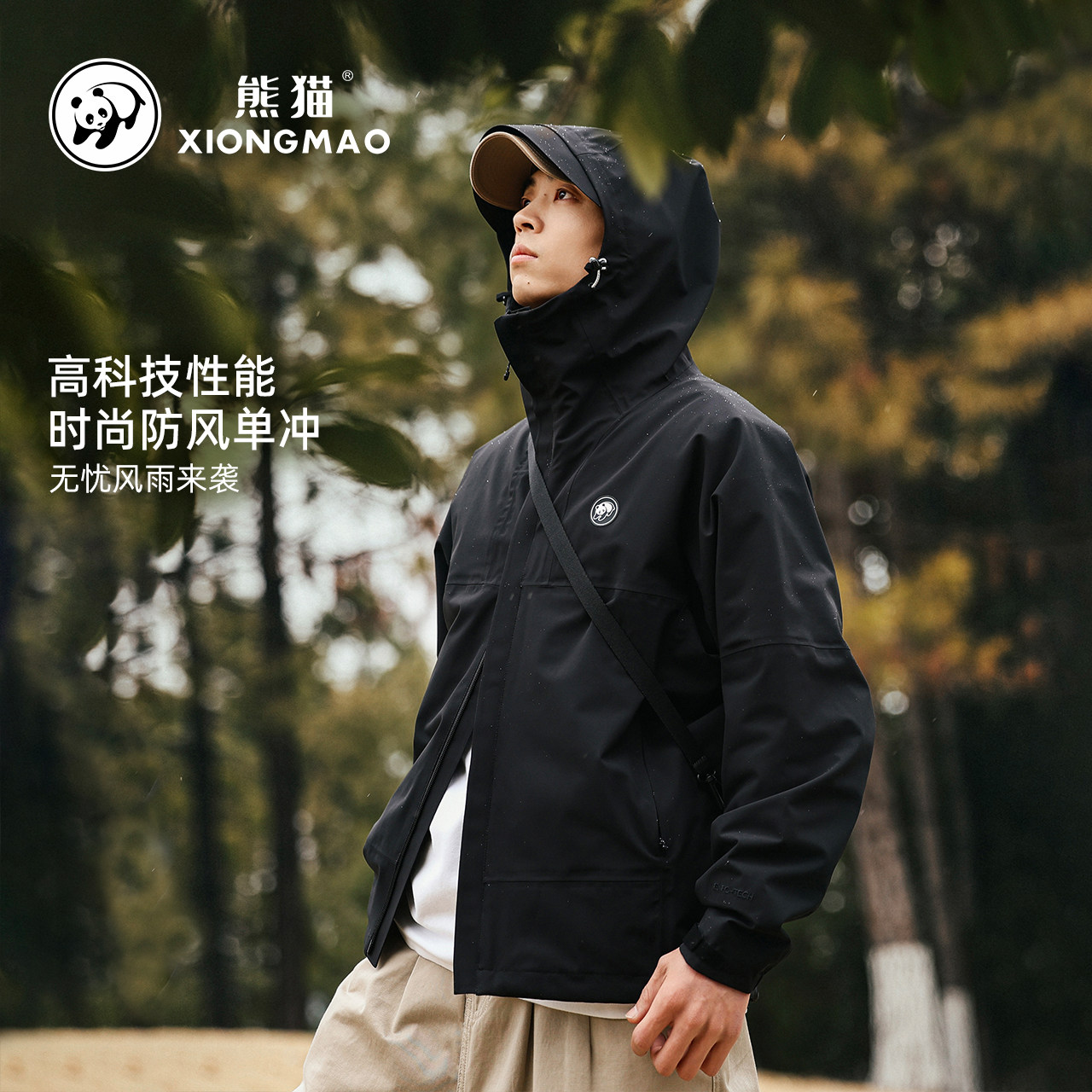 蔡徐坤同款熊猫户外冲锋衣防水防风旅行登山骑行服男