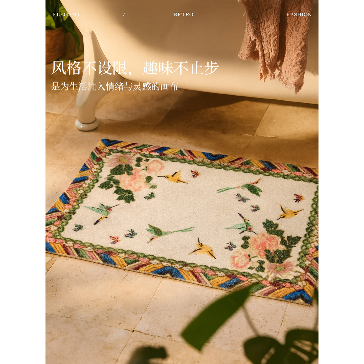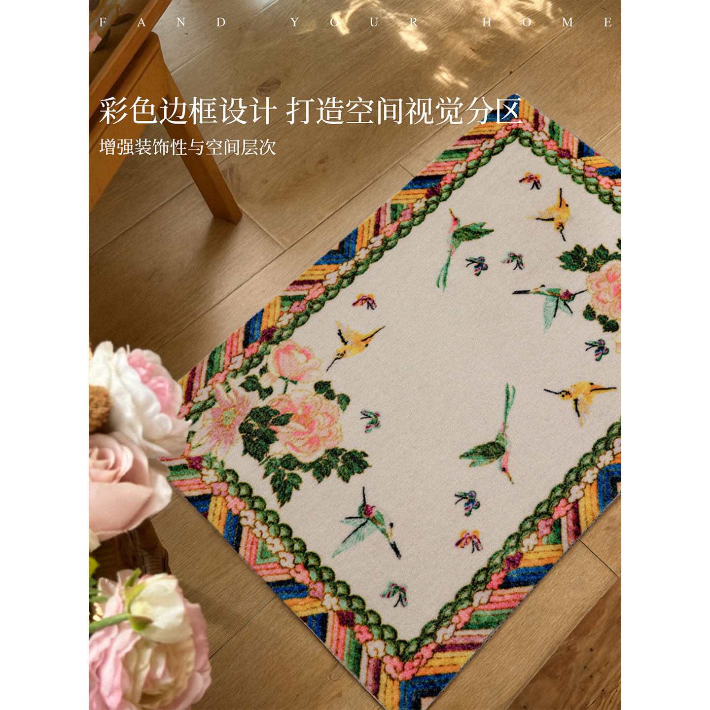 【孤品4折】蜡笔派山茶栖羽地垫法式轻奢高级氛围感入户垫地毯P