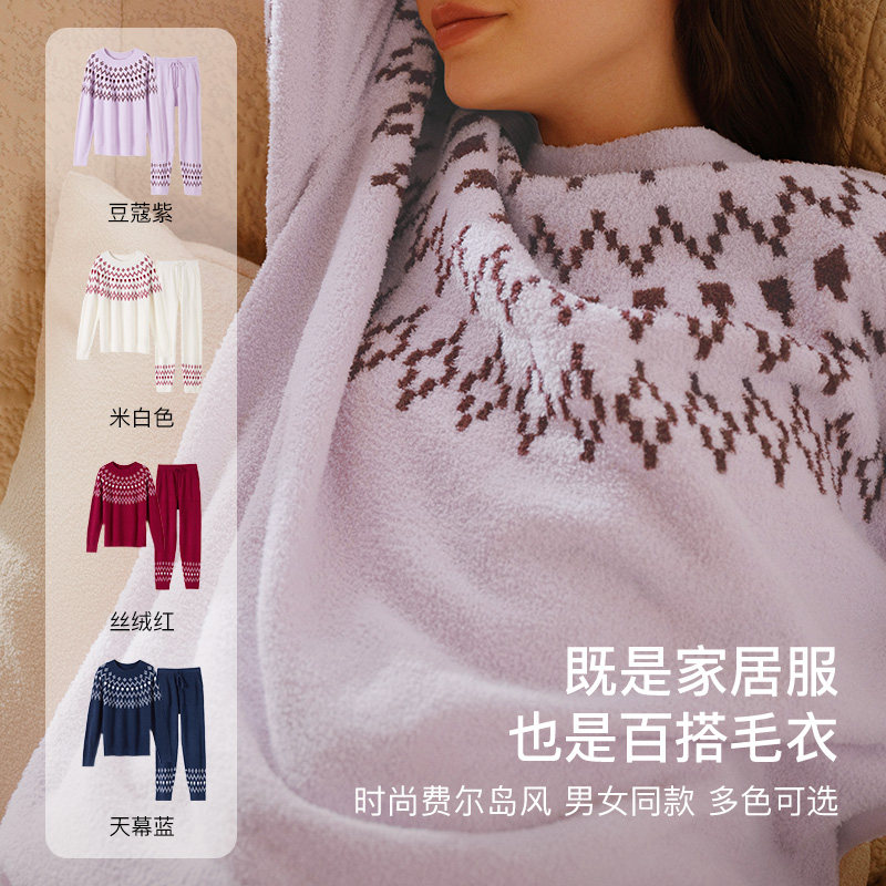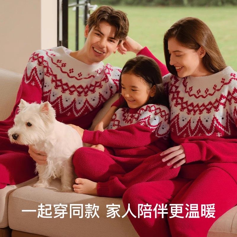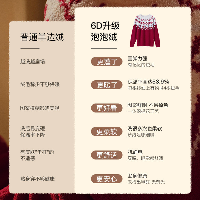 【虞书欣同款】ubras家居服泡泡绒费尔岛红色睡衣女情侣厚秋冬款