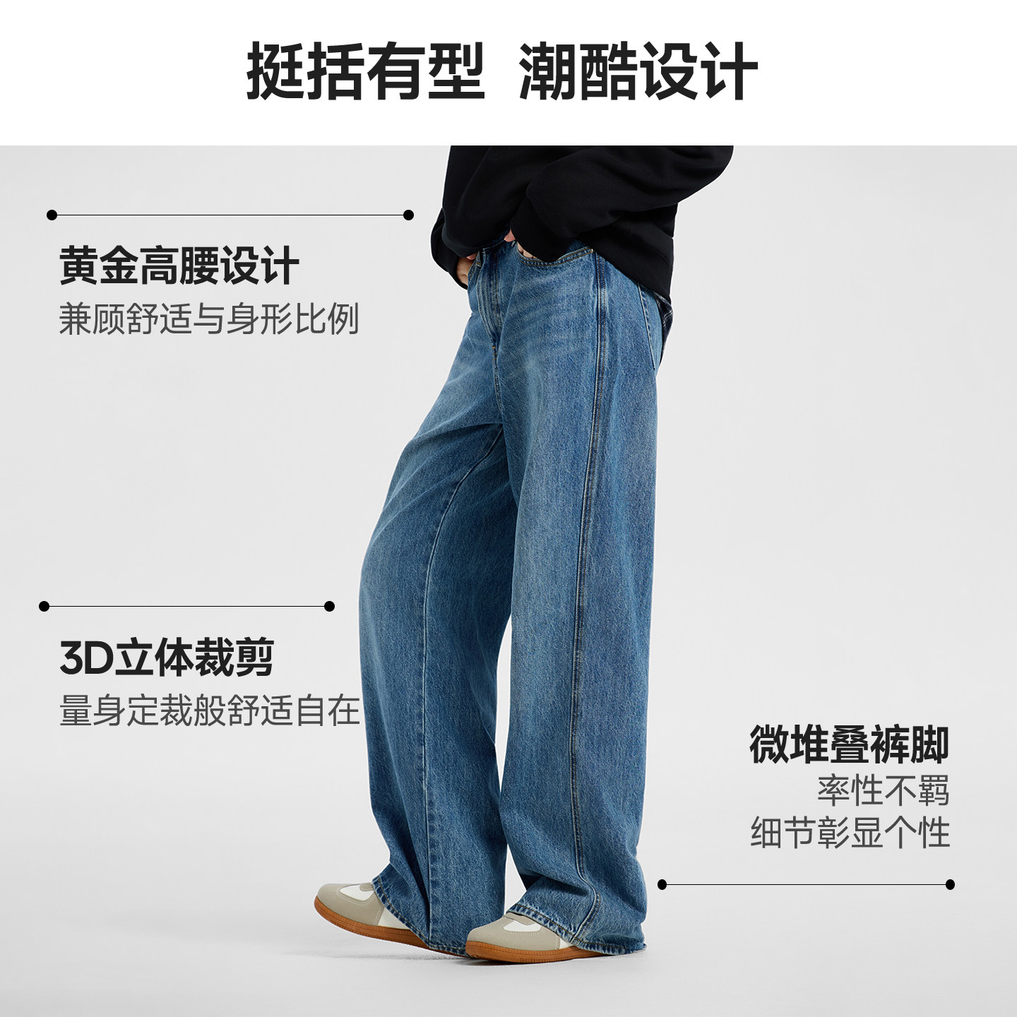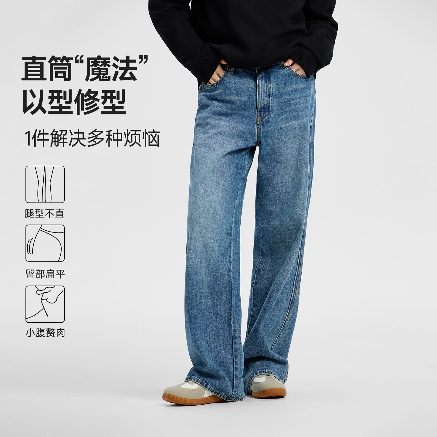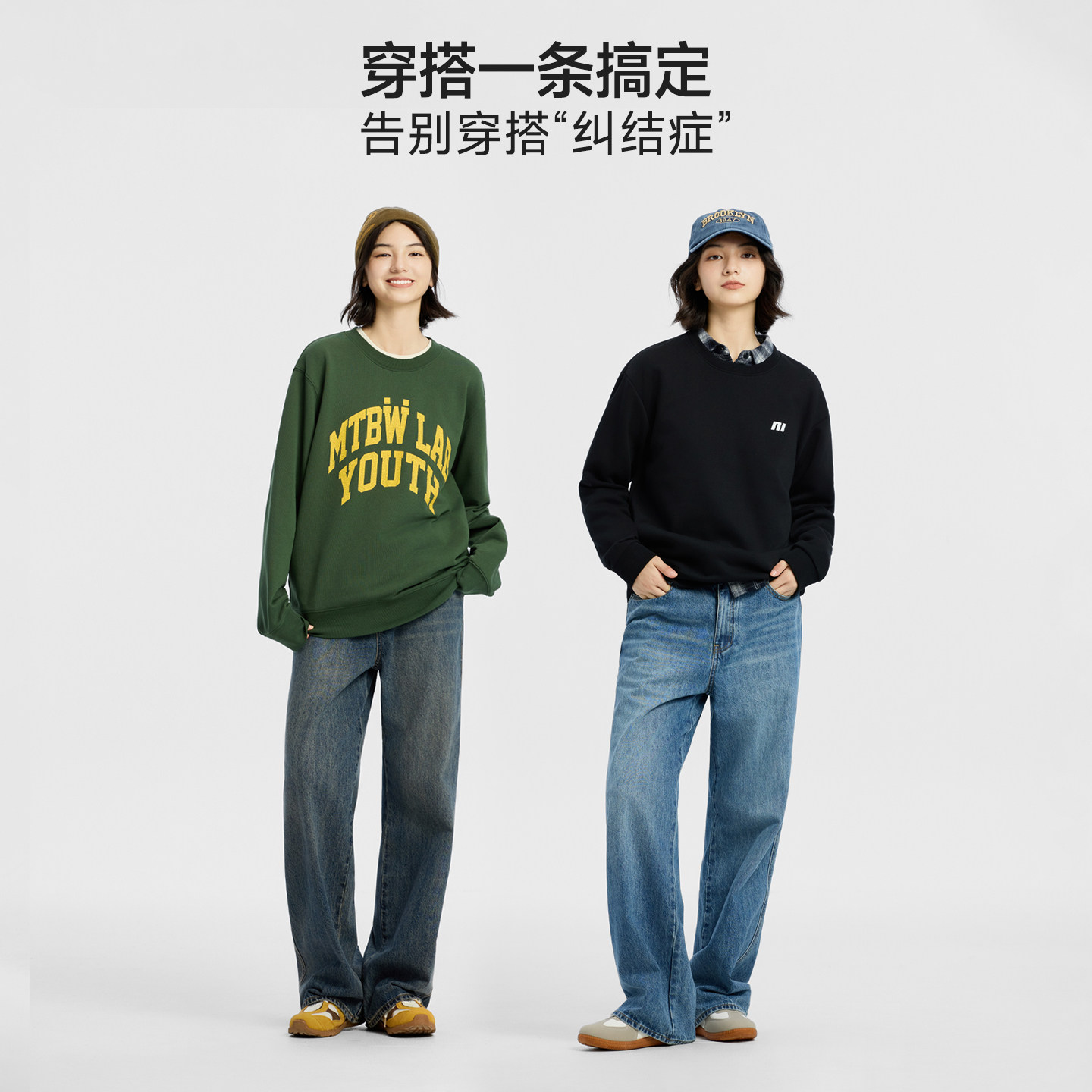美特斯邦威牛仔裤女2025秋季新款美式潮流日系宽松喇叭直筒拖地裤