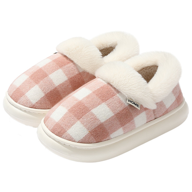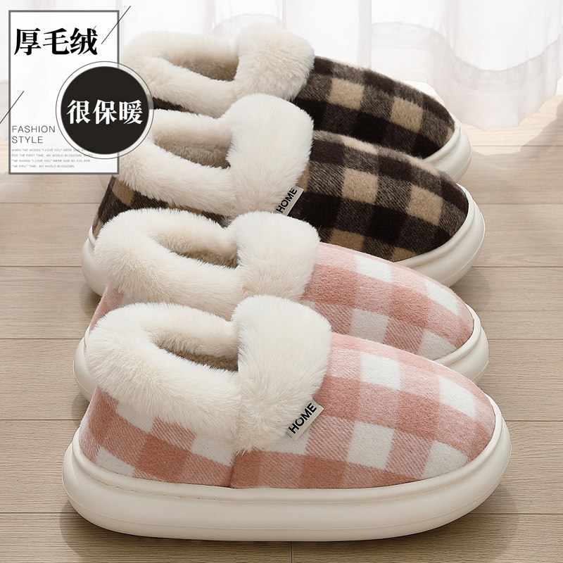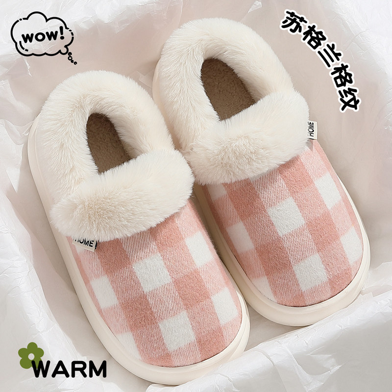 苏格兰纹棉鞋女冬季2025新款室内家居包跟毛绒保暖棉拖鞋女士外穿