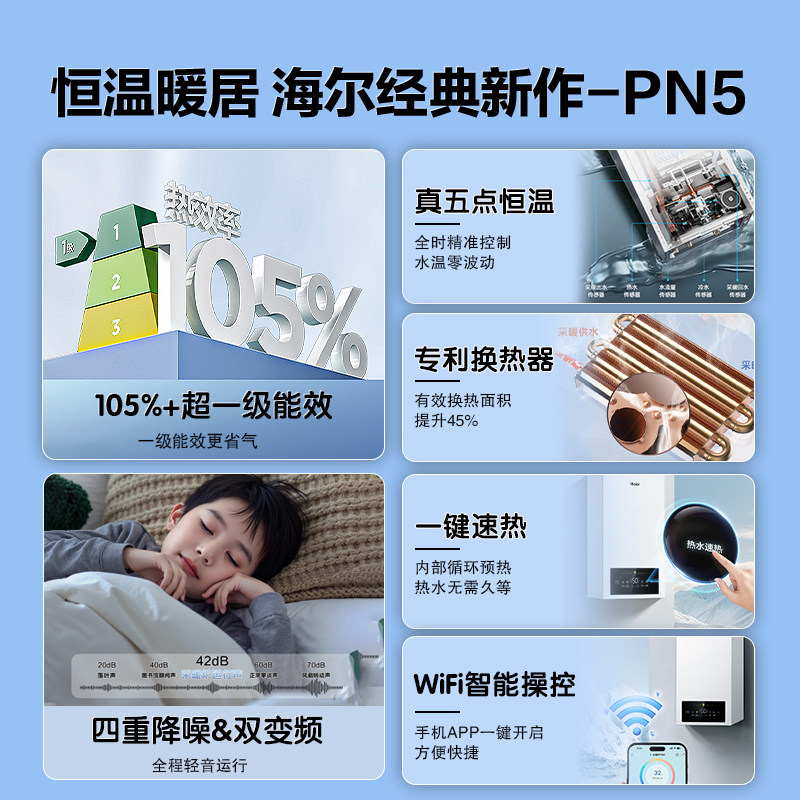 国补海尔采暖壁挂炉天然气家用超一级能效洗浴地暖锅炉PN5旗舰店