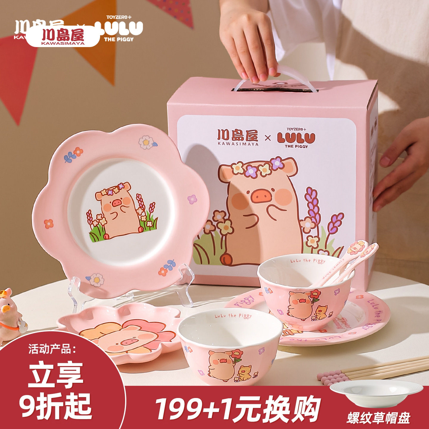 川岛屋&lulu猪联名 可爱餐具套装一人用碗碟礼盒乔迁生日礼物女生