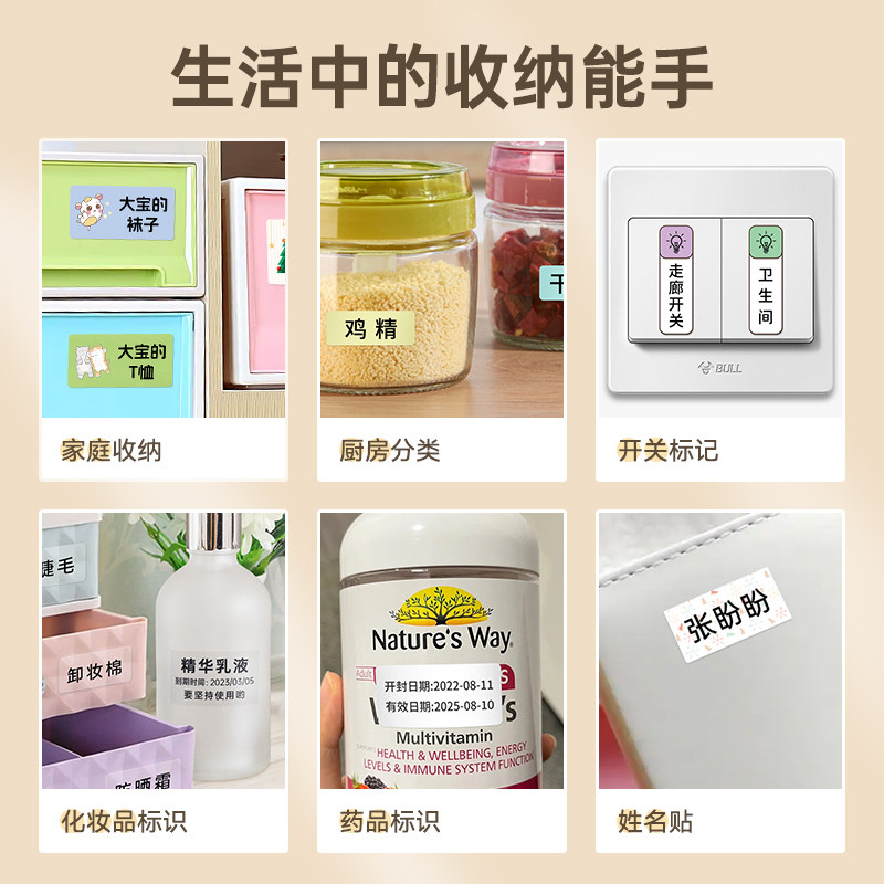 德佟P1标签机打印纸马卡龙色系不干胶贴纸幼儿园学生书本水杯彩色防水姓名贴自粘名字贴蓝牙手持便签打印机