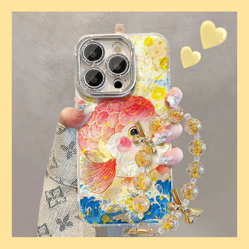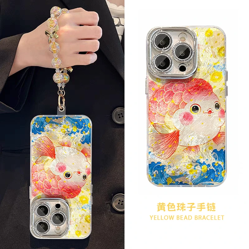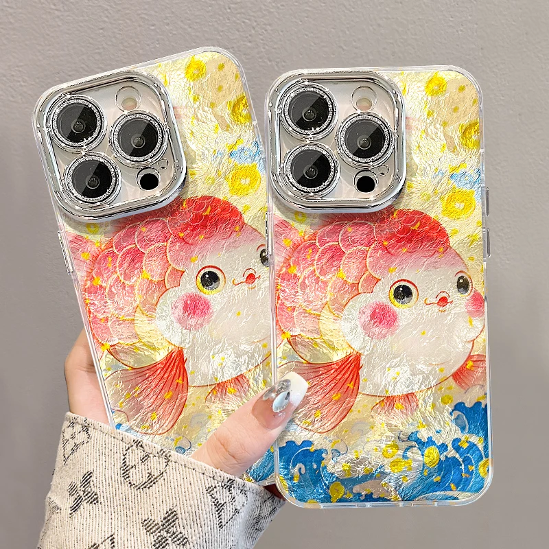 胖金鱼适用苹果16PROMAX手机壳iphone15/14PRO华为mate60pro荣耀300女Pura70精孔冰川纹OPPOReno13/S20