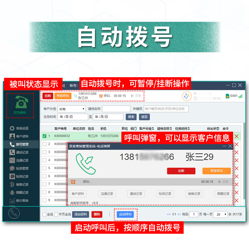 傲锋4G插卡电话管理系统手机自动拨号系统无线录音盒电话营销语音盒通话录音来电弹屏语音播放开场白二次开发