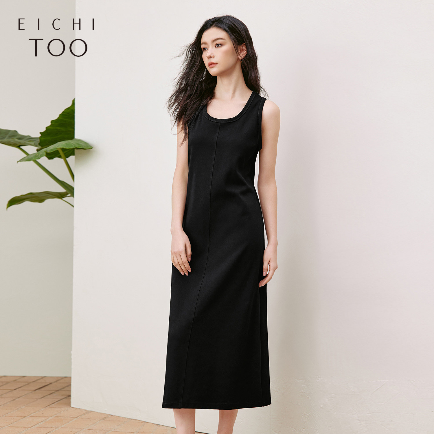 QY2 2026年春夏新款女装黑色无袖简约风格宽松版型连衣裙
