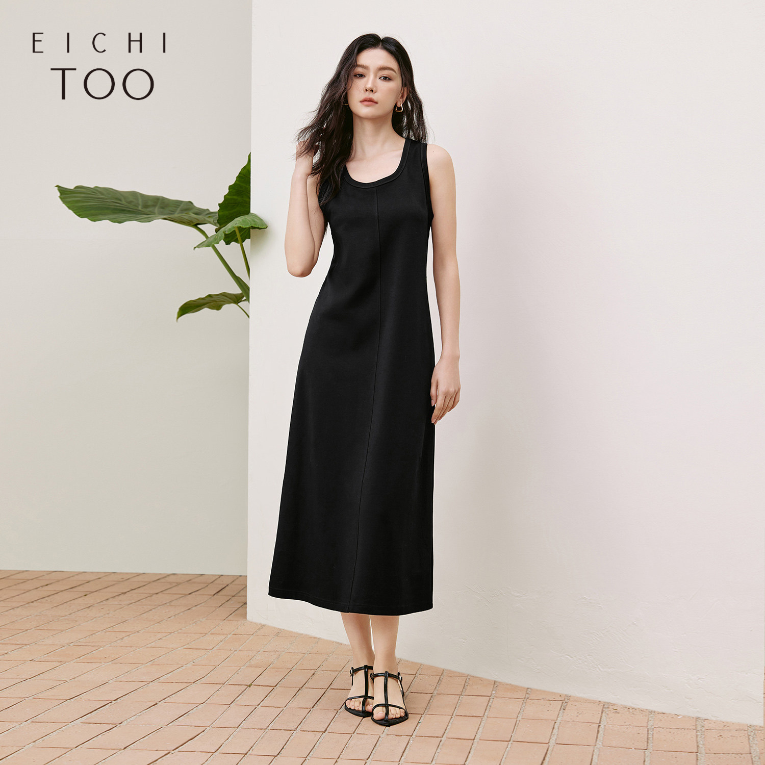 爱居兔百搭纯黑色连衣裙背心裙女夏季新款简约显瘦小黑裙