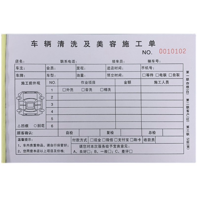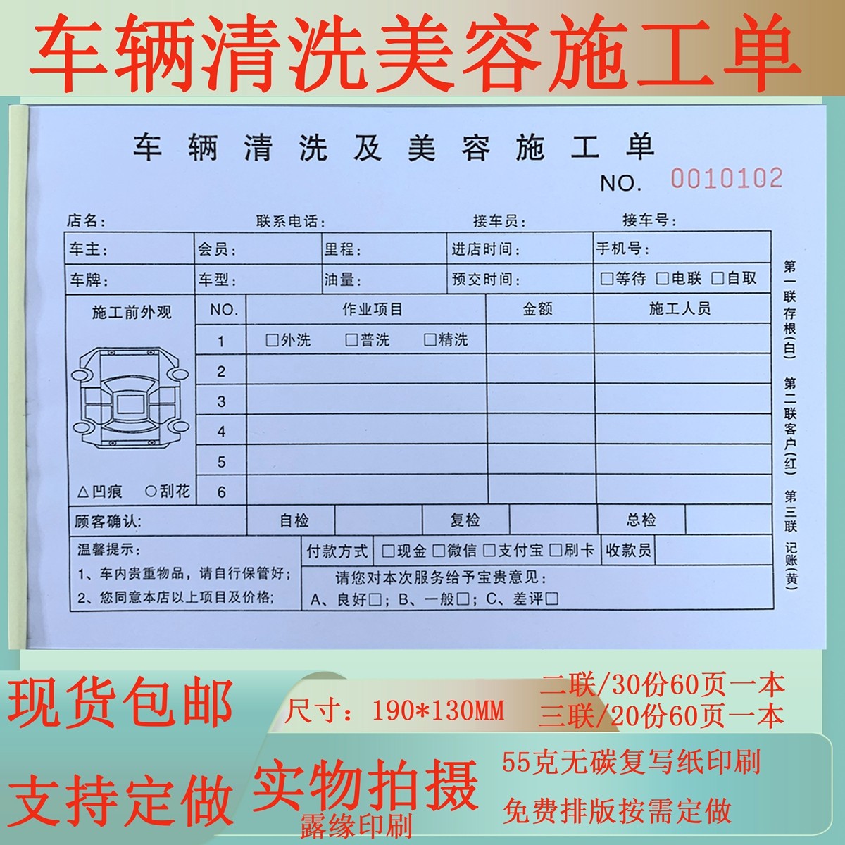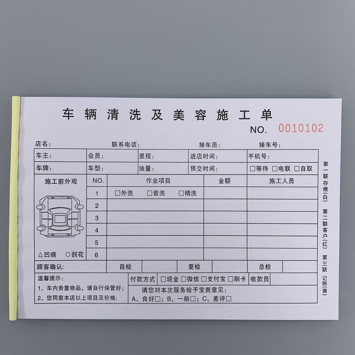 车辆清洗及美容施工单贴膜施工单汽车精洗项目单保养记录本可定制