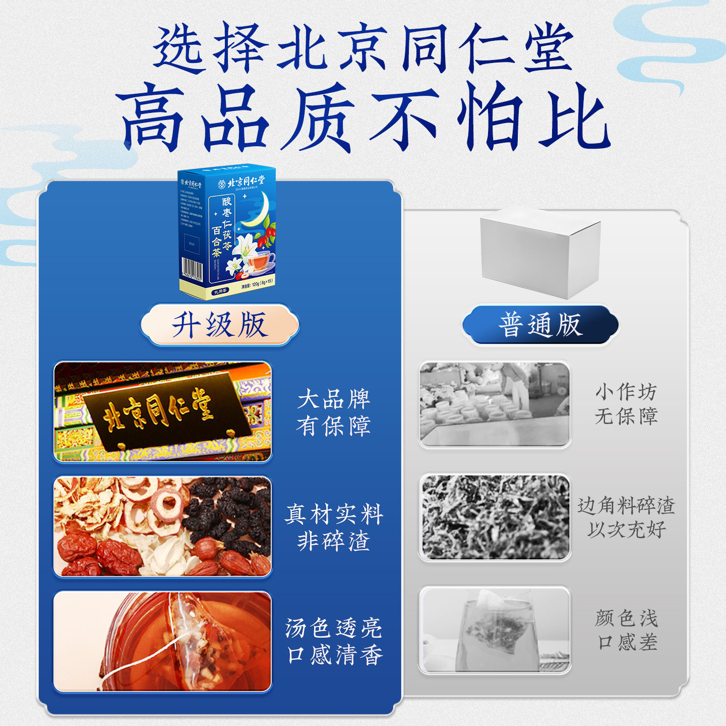 北京同仁堂酸枣仁百合茯苓睡眠差正品晚安睡眠茶安神眠茶年货经典