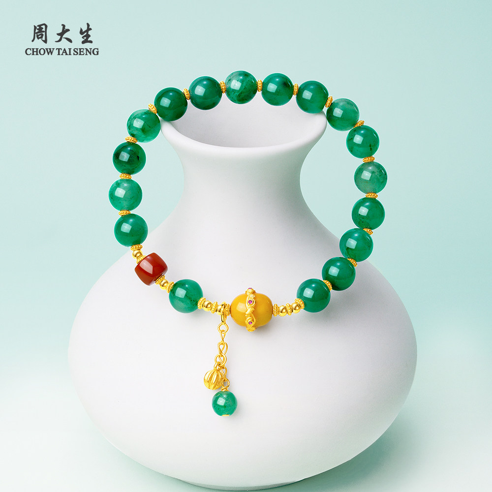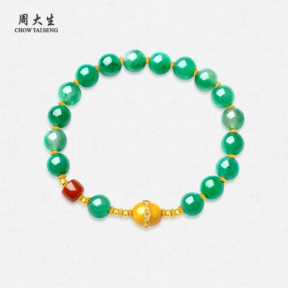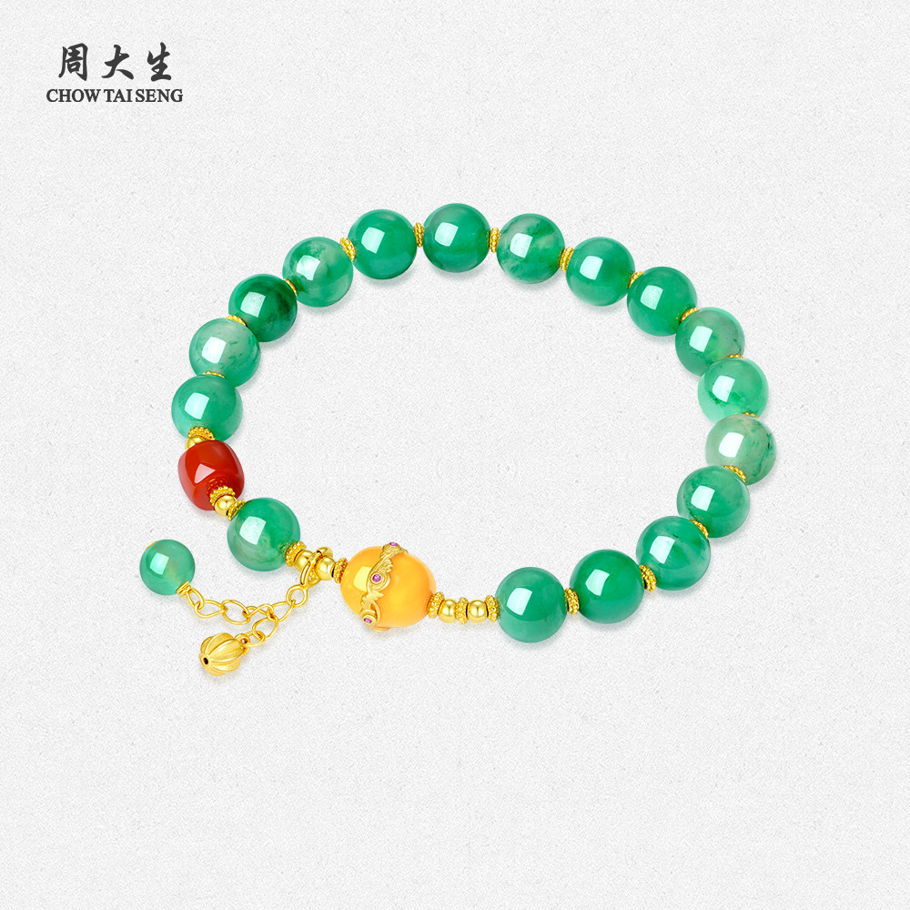 周大生天然正品非洲翠春江花潮手串女红玛瑙蜜蜡玉石手链