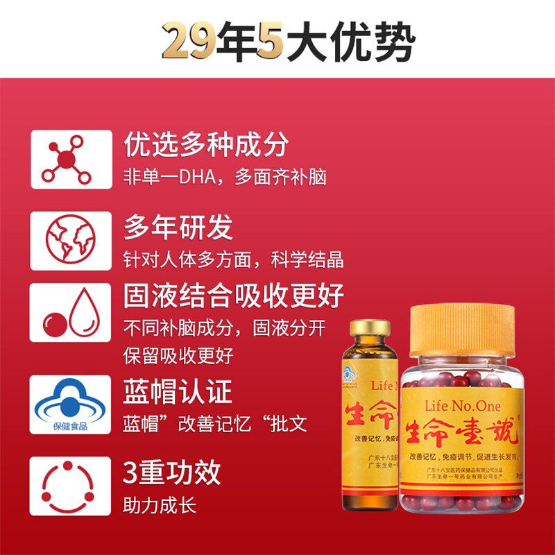 生命一号DHA增强记忆力促进生长免疫力补脑学生青少年儿童旗舰店
