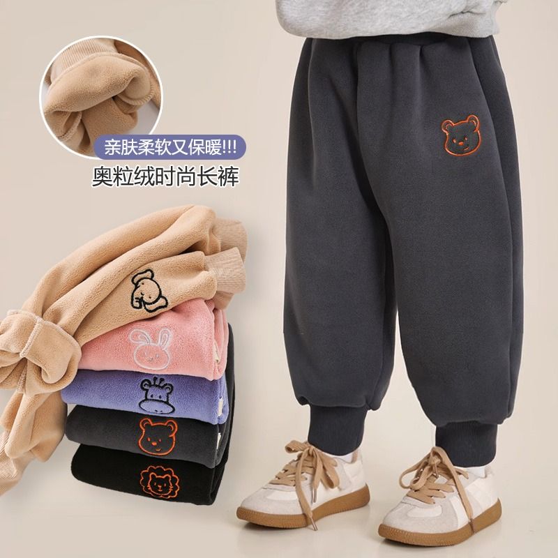 男女童加绒裤子秋冬款复合一体奥粒绒宝宝加厚长裤儿童保暖运动裤