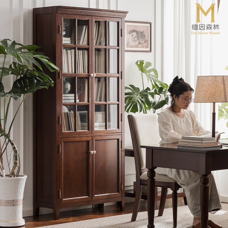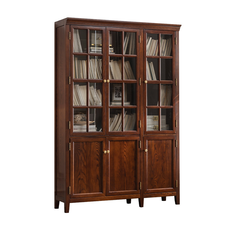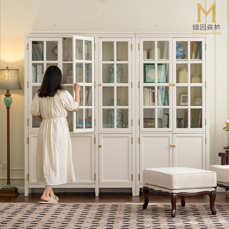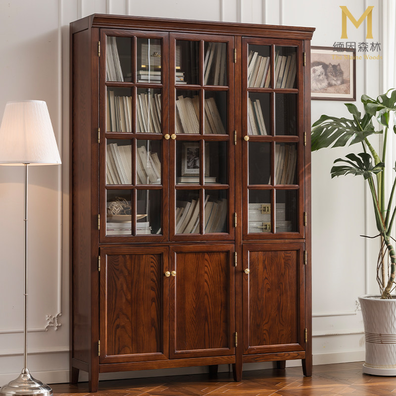 实木组合书柜玻璃带门轻奢美式组合柜家用立柜立式落地现代靠墙