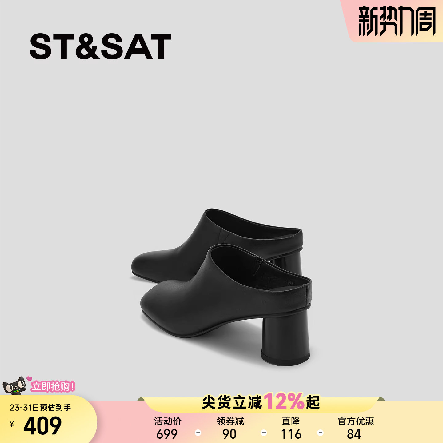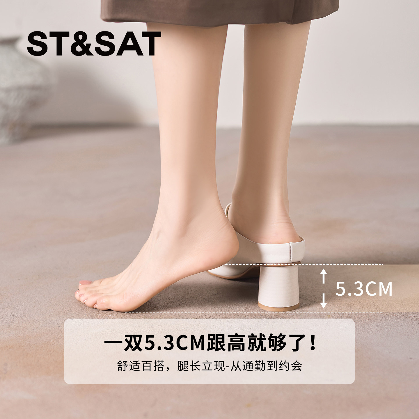 星期六真皮包头拖鞋女外穿夏季穆勒鞋时尚不累脚无后跟高跟鞋凉鞋