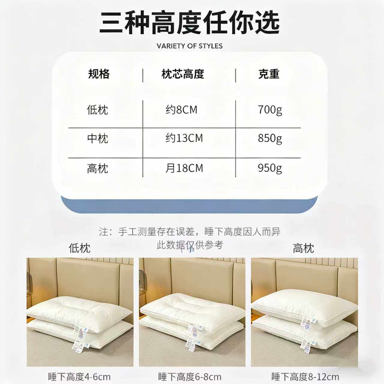 A类母婴枕头护颈椎枕芯助睡眠学生宿舍男酒店专用单人低家用一对