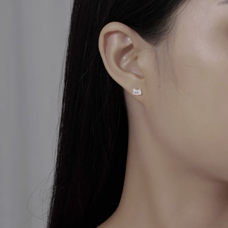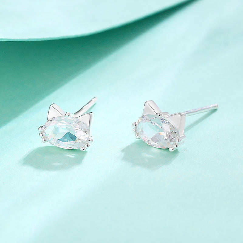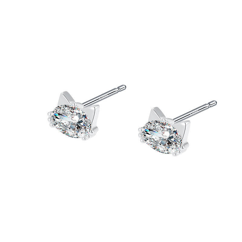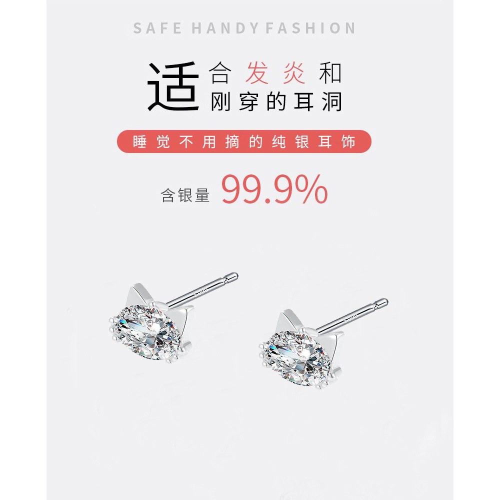 S999纯银单钻小猫耳钉简约时尚小众养耳洞通勤百搭女式银耳饰品