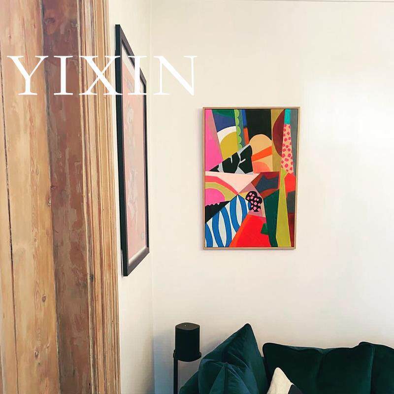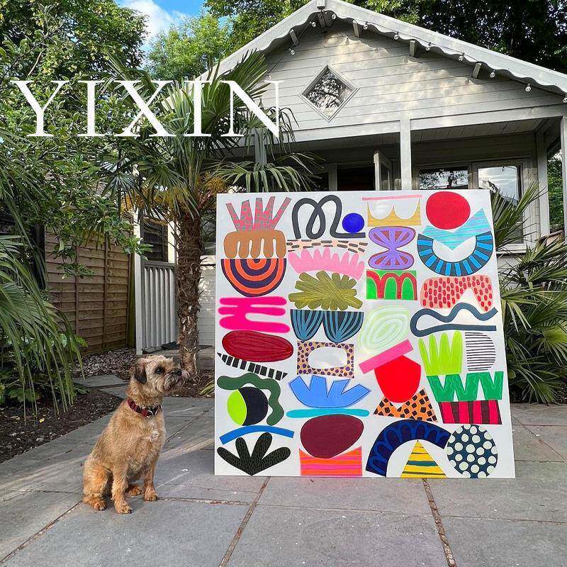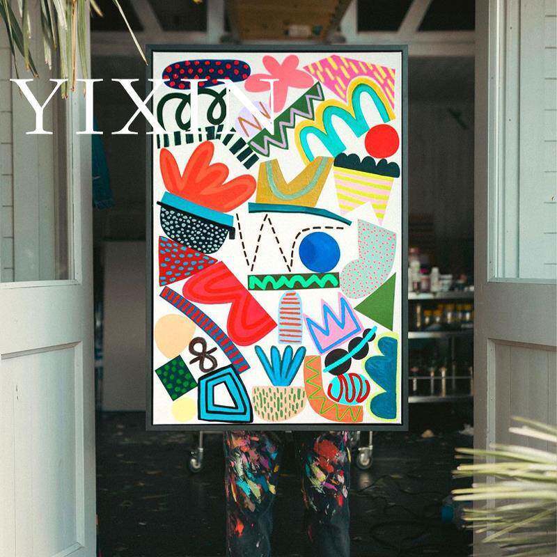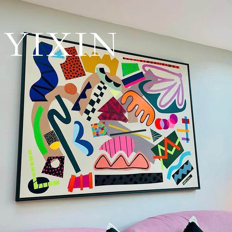YIXIN 后现代客厅油画大尺寸走廊装饰画抽象色块落地画手工彩绘画
