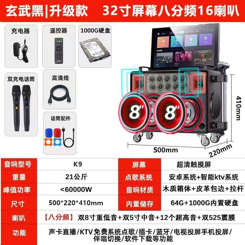 广场舞音响带显示屏户外唱k歌卡机家庭ktv套装音箱点歌机拉ok一体