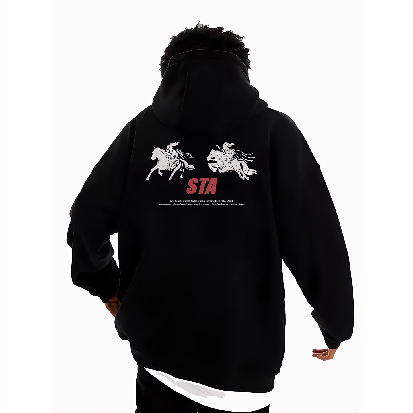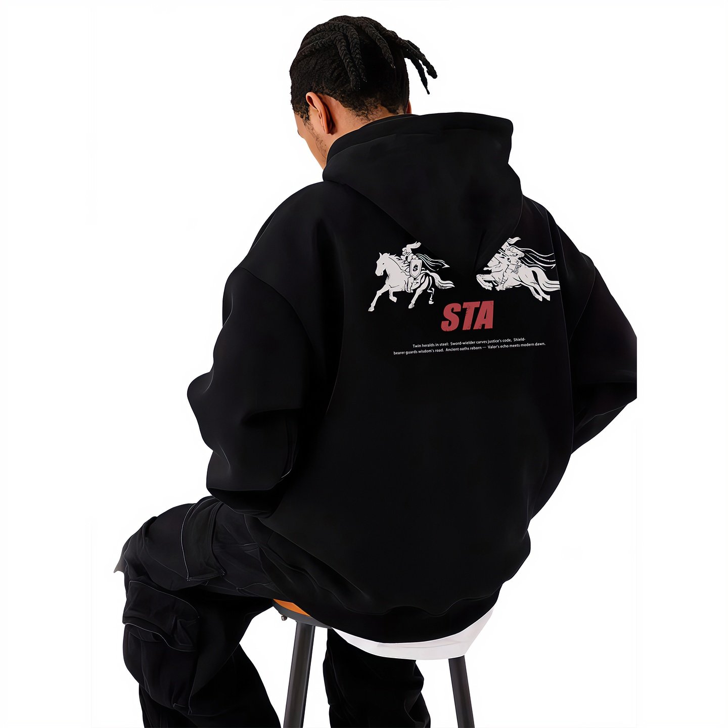 STA旗舰店美式战马印花连帽卫衣男款秋冬季潮牌高街重磅纯棉外套