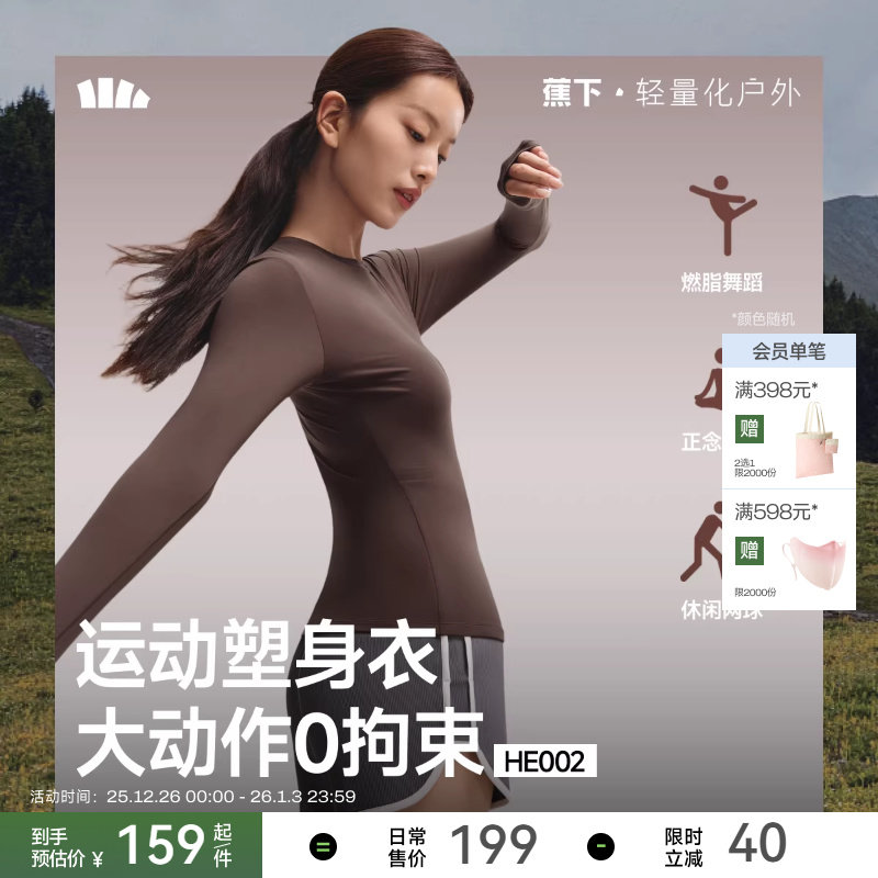 蕉下裸感运动塑身衣修身显瘦长袖t恤女款肌底衣高弹收腰腹打底衫