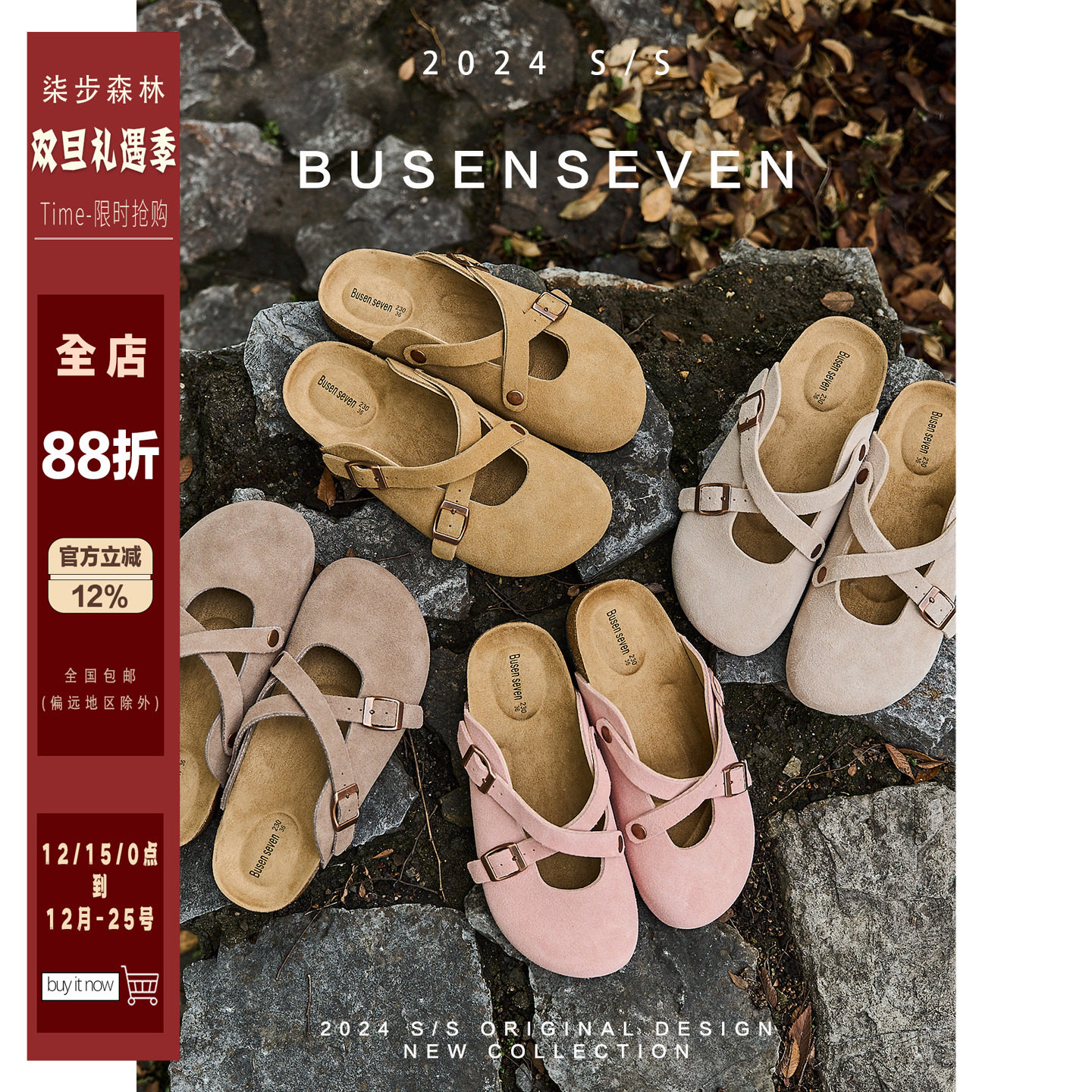 柒步森林"海岛假日"勃肯包头交叉带半凉拖鞋子女外穿夏季时尚新款