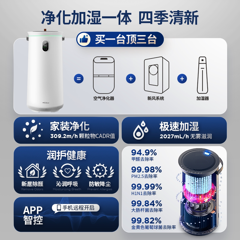 树新风空气加湿净化器一体机G2pro母婴家用卧室内静音无雾加湿G2