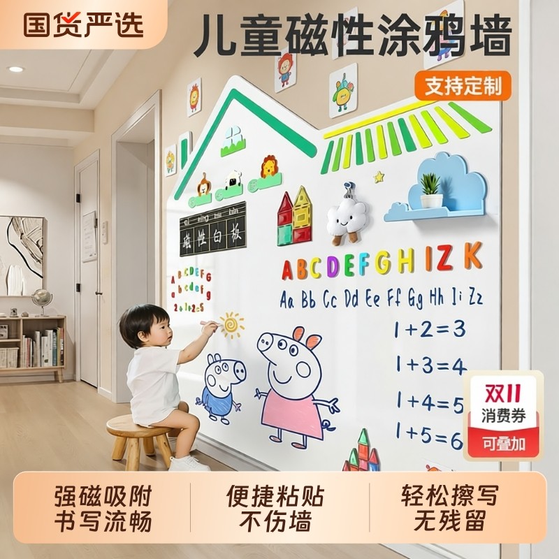 软白板家用教学可擦写可移除不伤墙贴纸备忘留言板记事板小学生写字板儿童涂鸦画画强力磁吸板磁性无尘小黑板