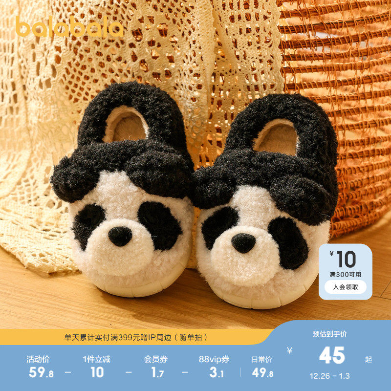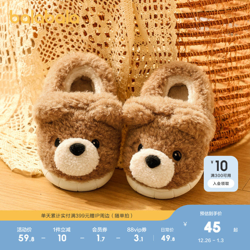 巴拉巴拉童鞋儿童秋冬棉拖鞋男童女童家居鞋可爱动物造型包跟棉拖