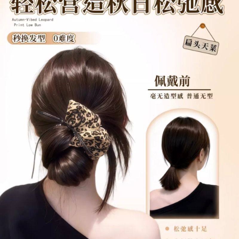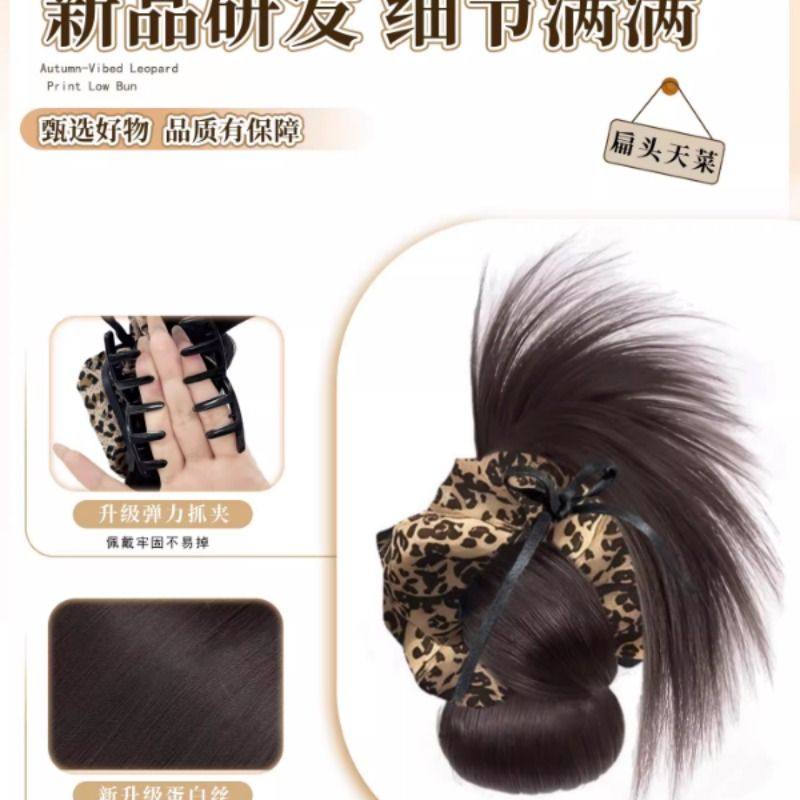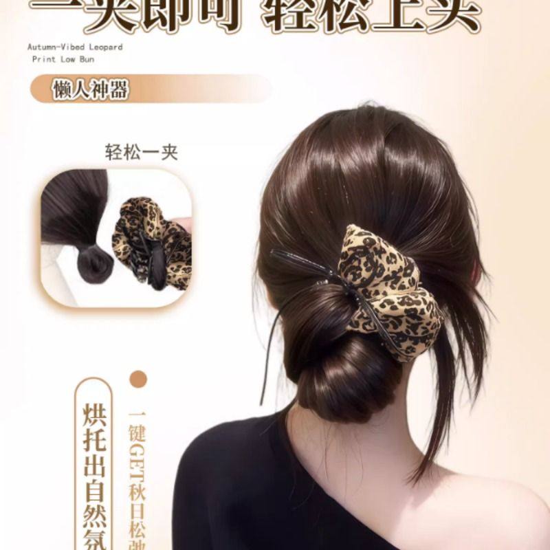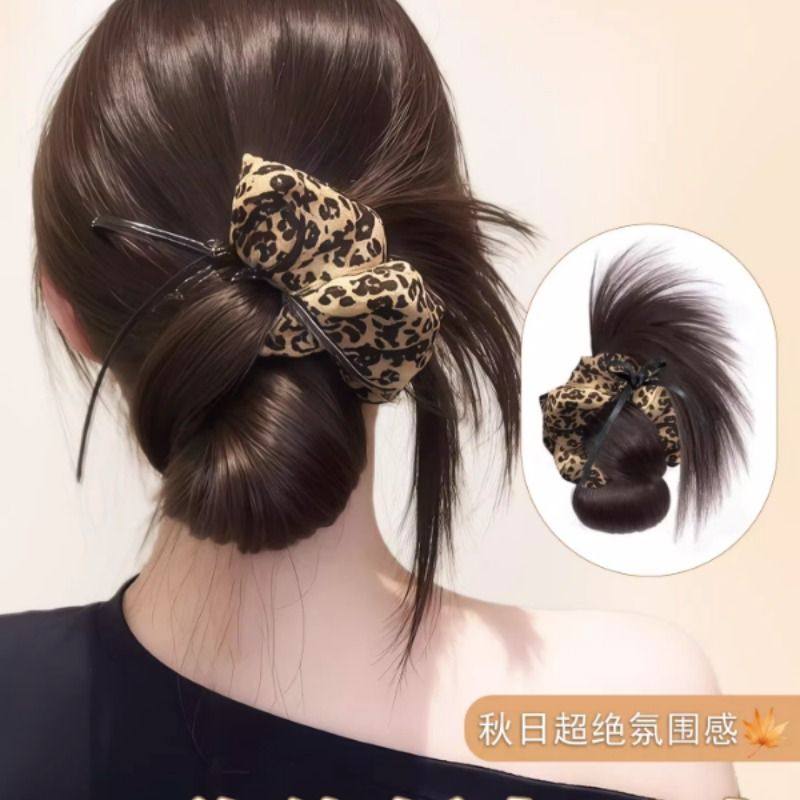 豹纹丸子头假发抓夹鸡毛花苞头氛围感盘发神器自然蓬松低扎假发包