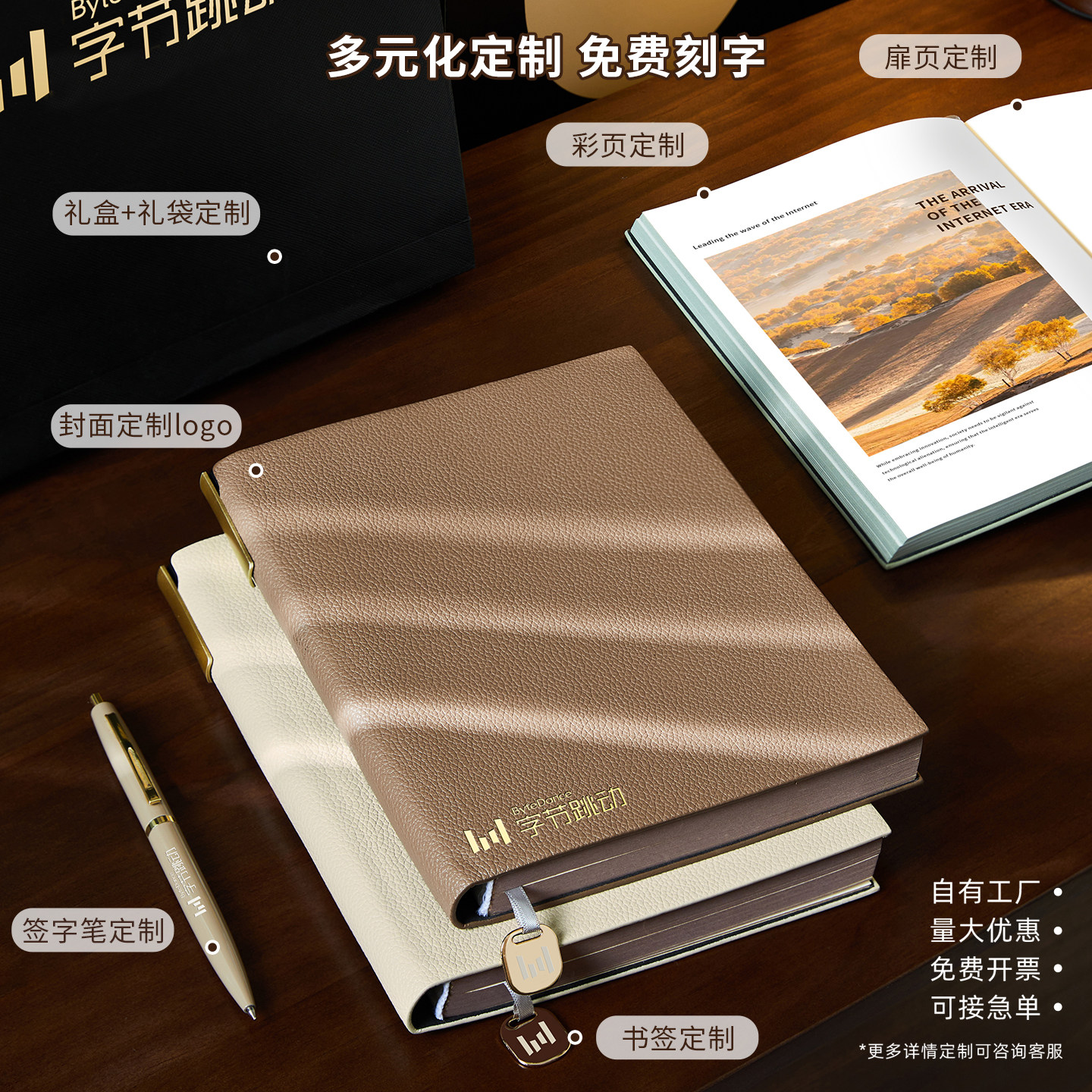 a4笔记本本子2025年新款国风高颜值超厚加厚大号高档记事本a5商务办公皮面工作会议记录b5日记本定制可印logo