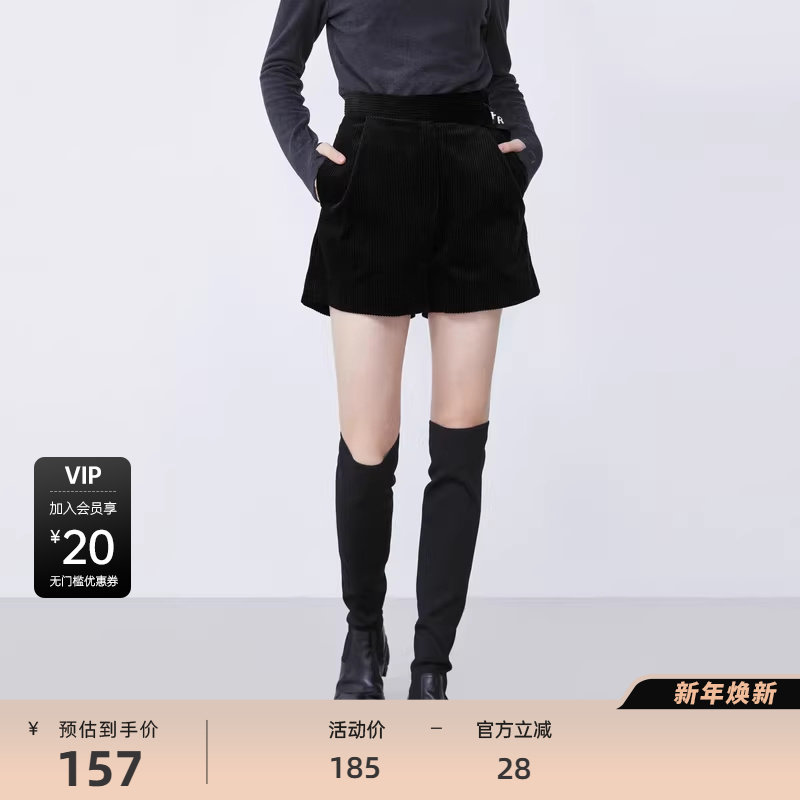 sdeer圣迪奥女装时尚撞色字母飘带灯芯绒A字短裤S21480909