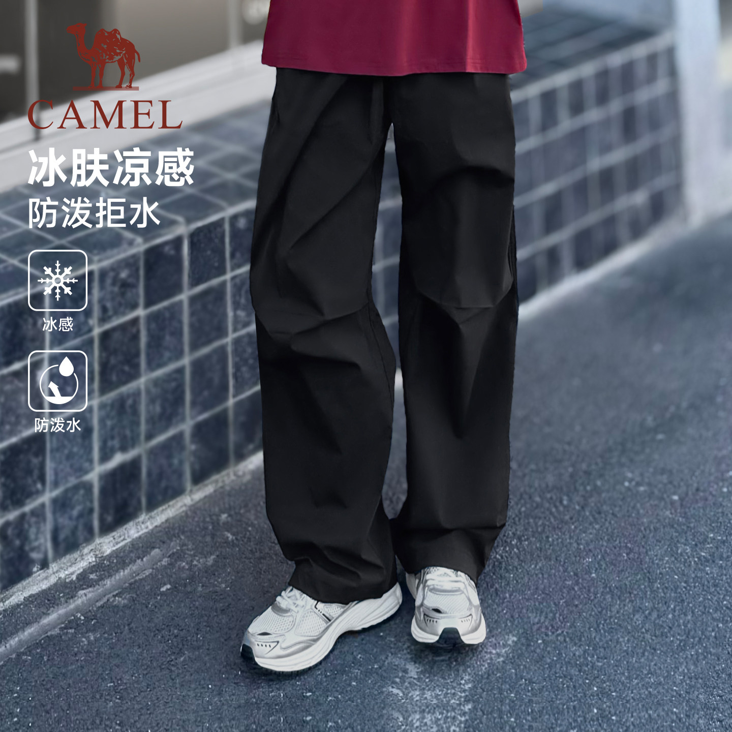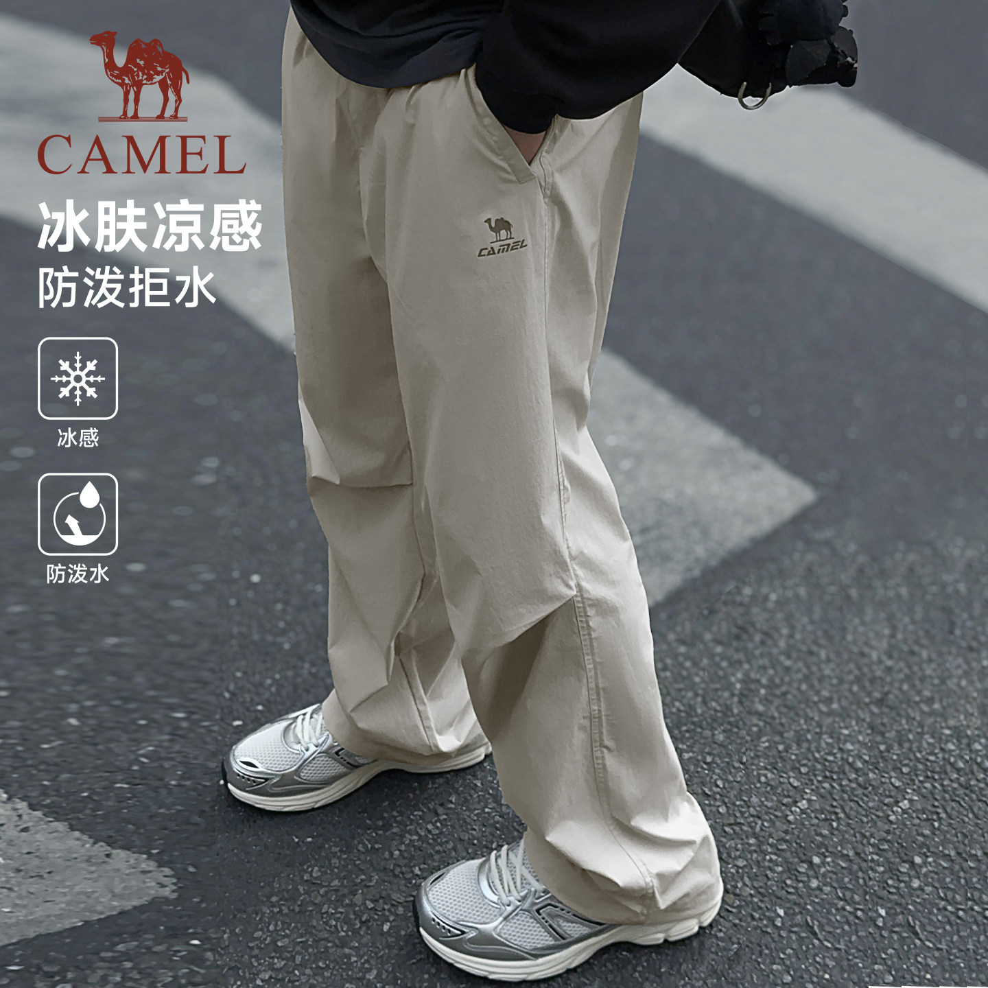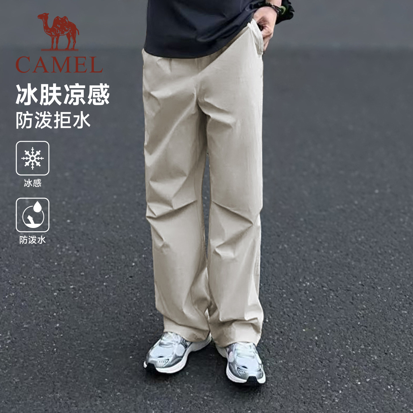 骆驼萌神运动冰感工装裤男26夏季防泼水直筒休闲户外伞兵登山裤女