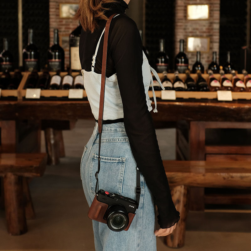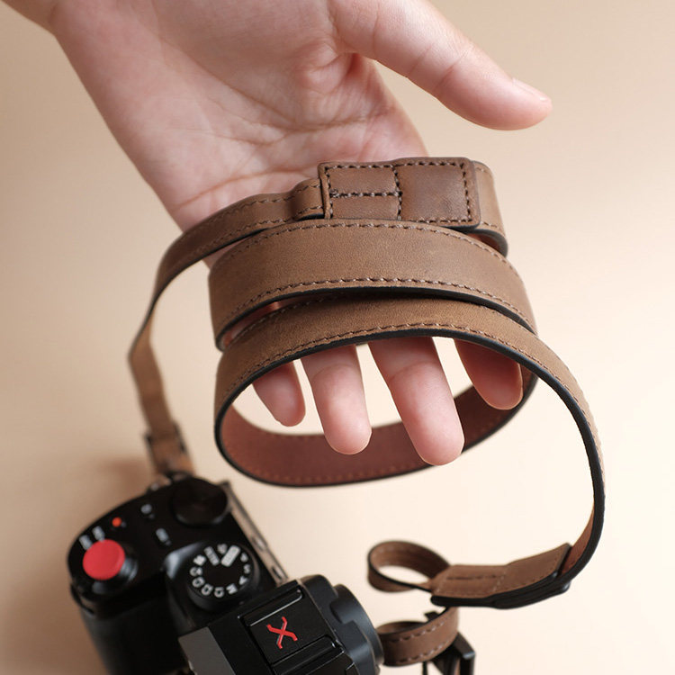 真皮调节肩带适用于xm5索尼zve10相机背带挂绳xh2真皮肩带斜跨