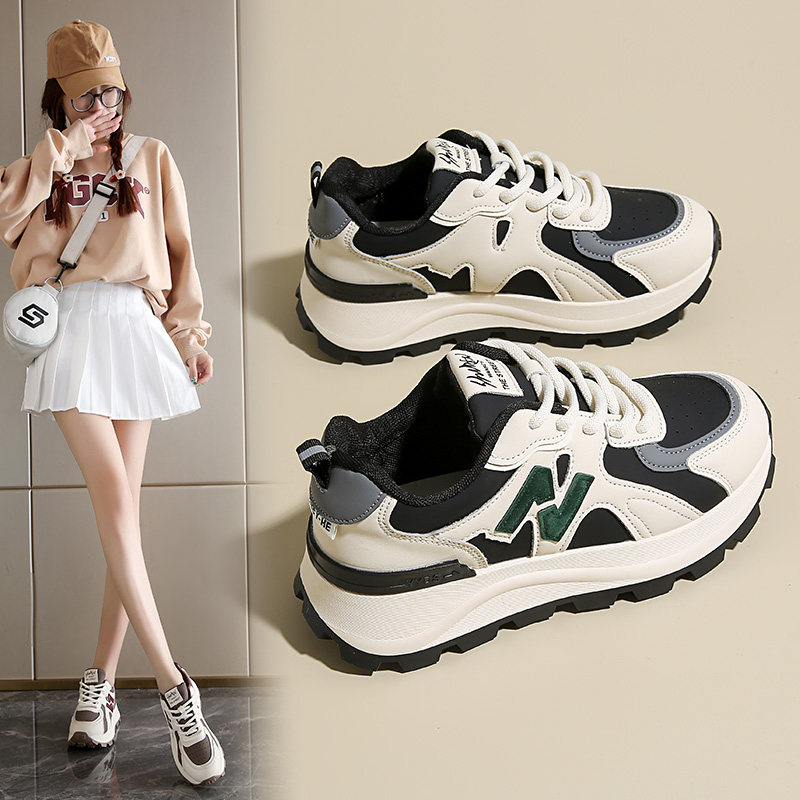 蜘蛛王女鞋踩屎感真皮运动鞋女春秋厚底显脚小码34阿甘老爹鞋软底