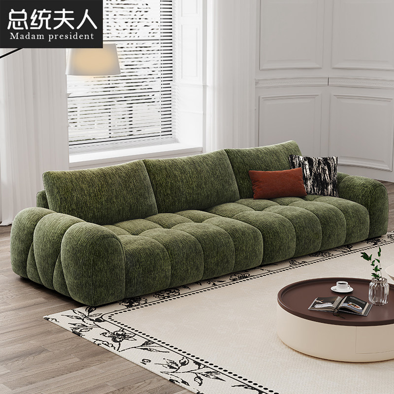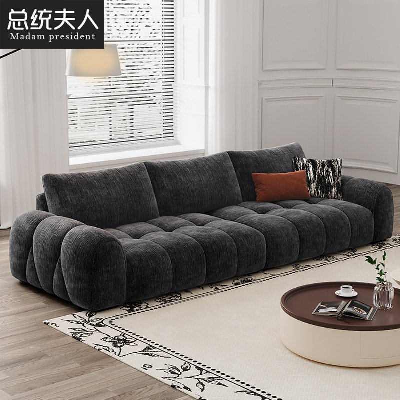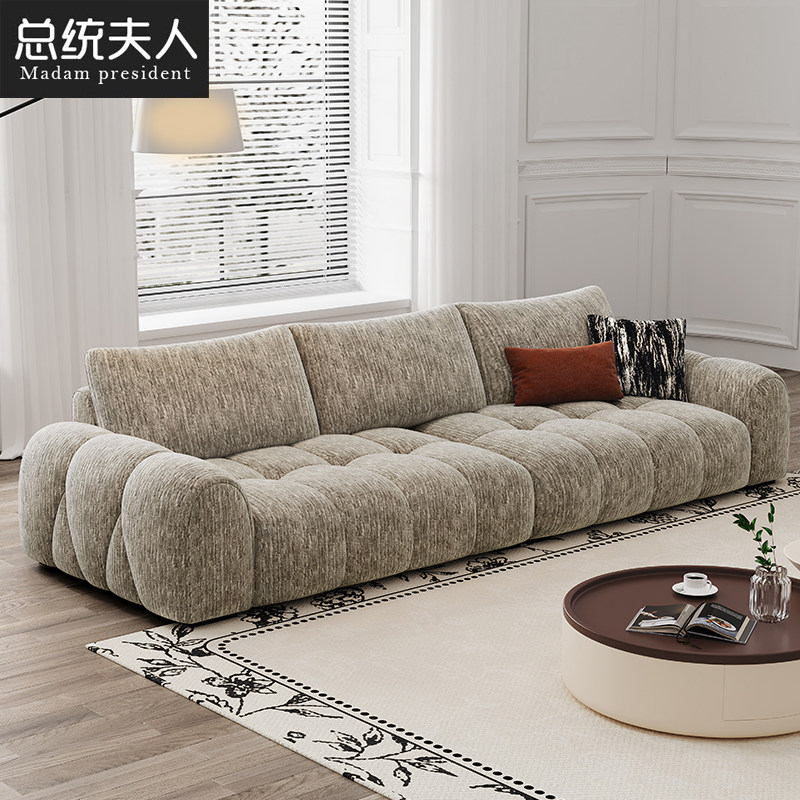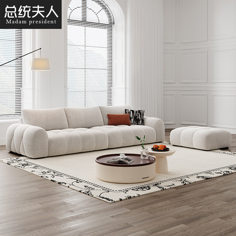 总统夫人复古布艺沙发可拆洗猫抓云朵直排奶油风雪尼尔客厅布沙发