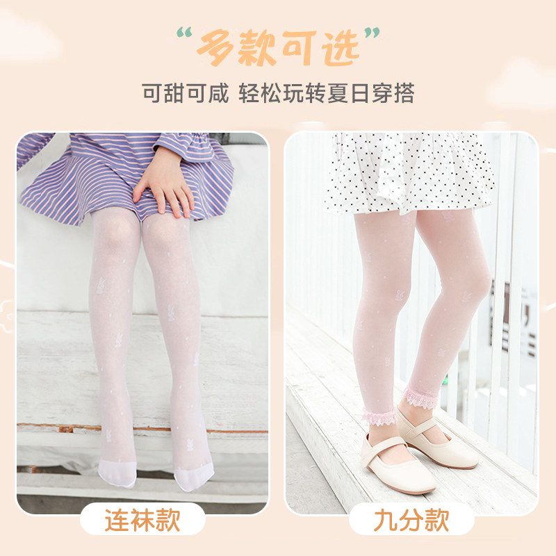 女童丝袜连裤袜夏季薄款舞蹈打底袜宝宝防蚊白色九分儿童打底裤