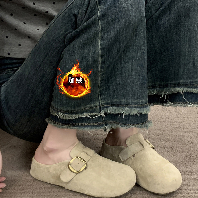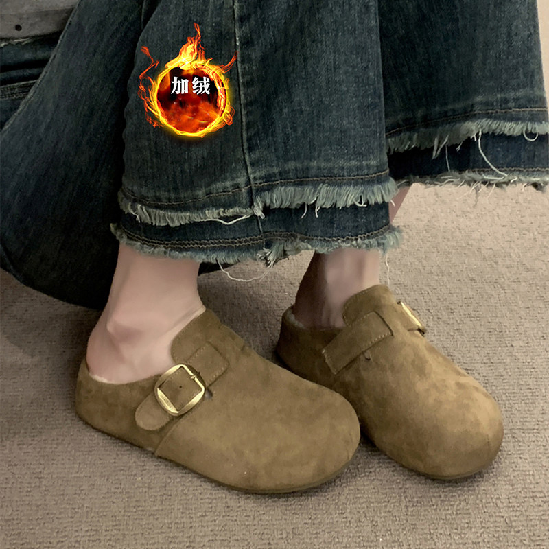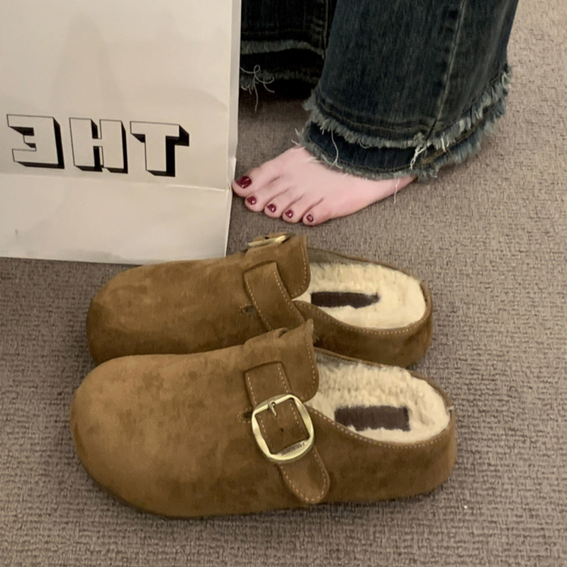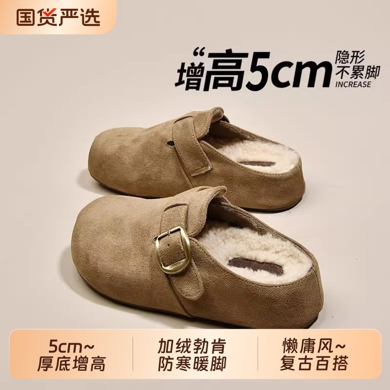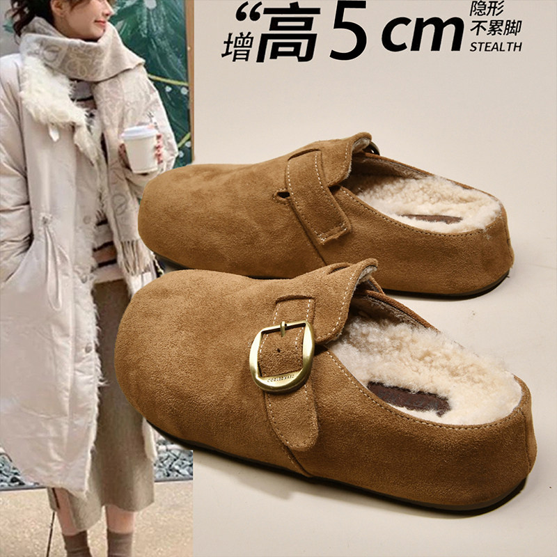 厚底内增高加绒勃肯鞋女包头半拖外穿2025秋冬新款毛毛博肯雪地靴