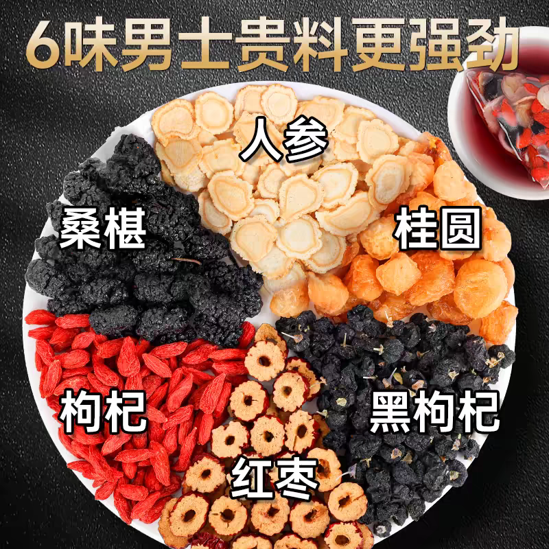 人参桑葚黑枸杞桂圆红枣六宝茶男男士养生茶五八宝强肾补精泡水喝
