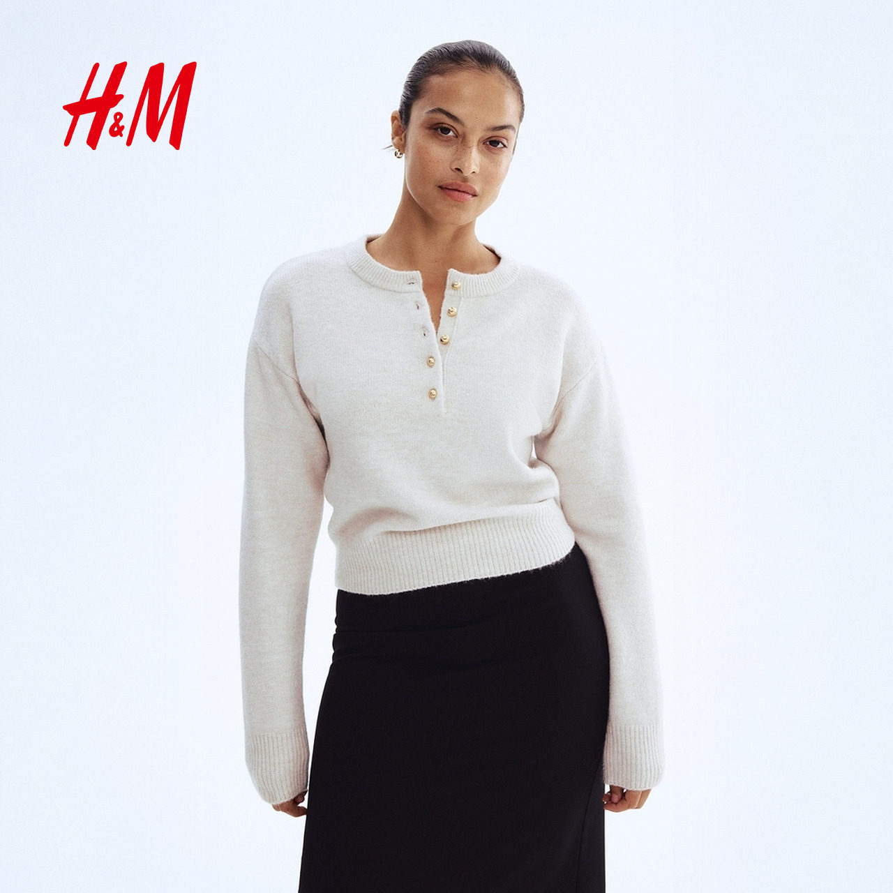 HM女装毛针织衫2025冬季新款气质上部配纽扣套衫保暖毛衣1295276