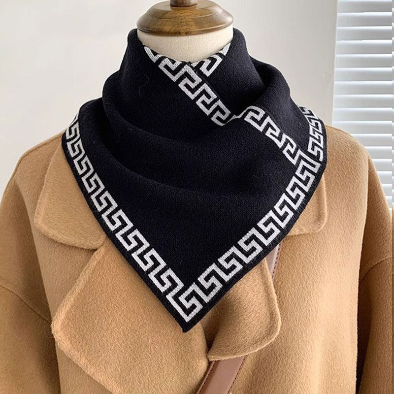 2025新款针织三角巾护颈围脖保暖假领秋冬款套头脖套围巾男女黑白