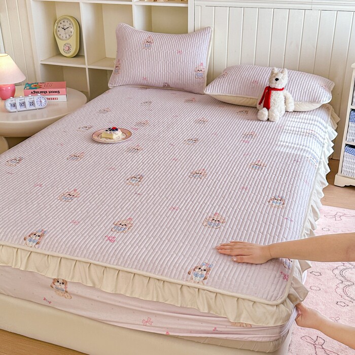 花边全棉纯棉印花夹棉床笠三件套床垫保护套罩全包围床罩防尘